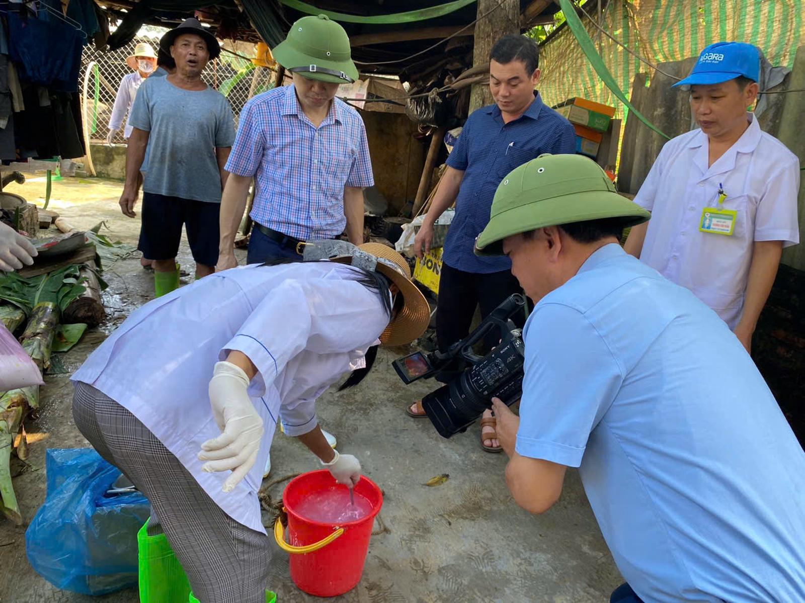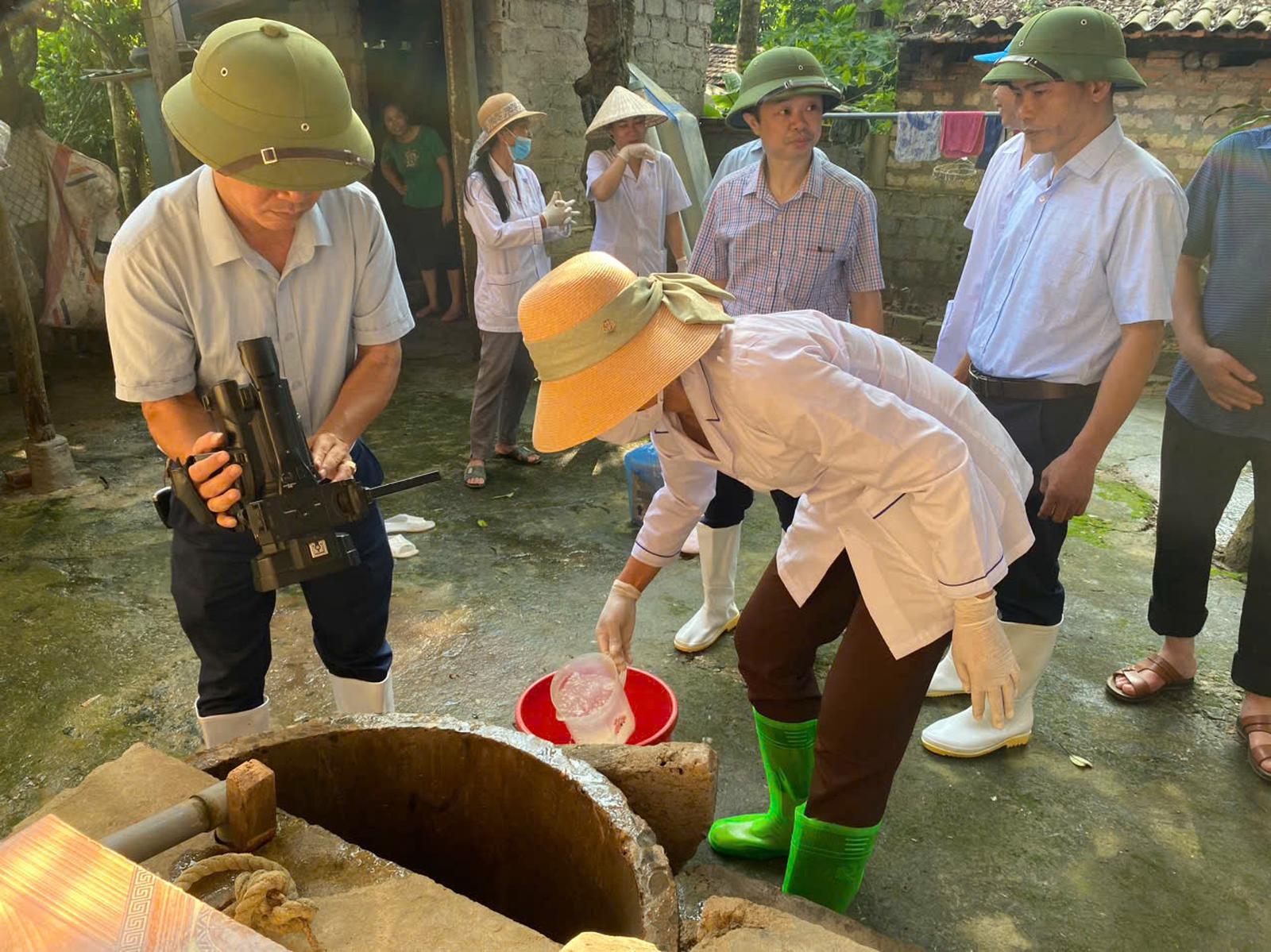 Trung tâm Y tế huyện Thạch Thành hướng dẫn cách xử lý nuồn nước để đảm bảo nước sinh hoạt cho người dân. Ảnh: Hương Trà