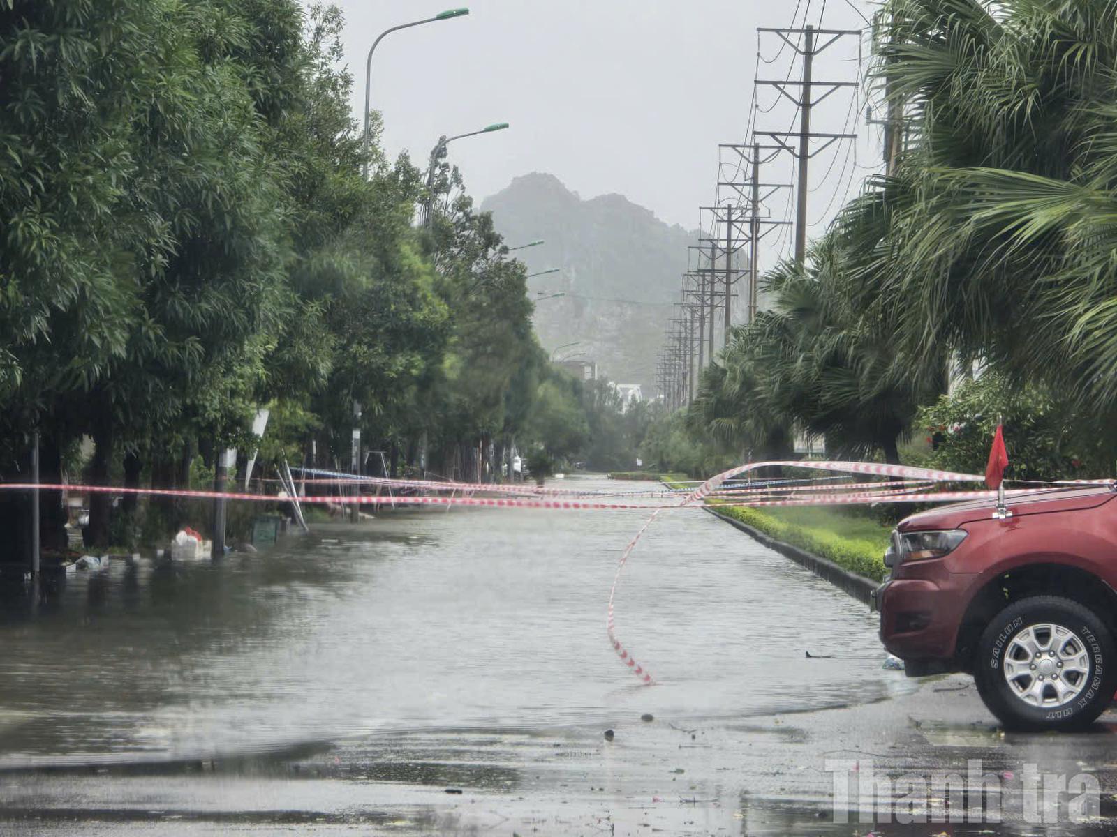 Nhiều tuyến đường bị ngập nước do bão số 10 đổ bộ. Ảnh: Văn Thanh