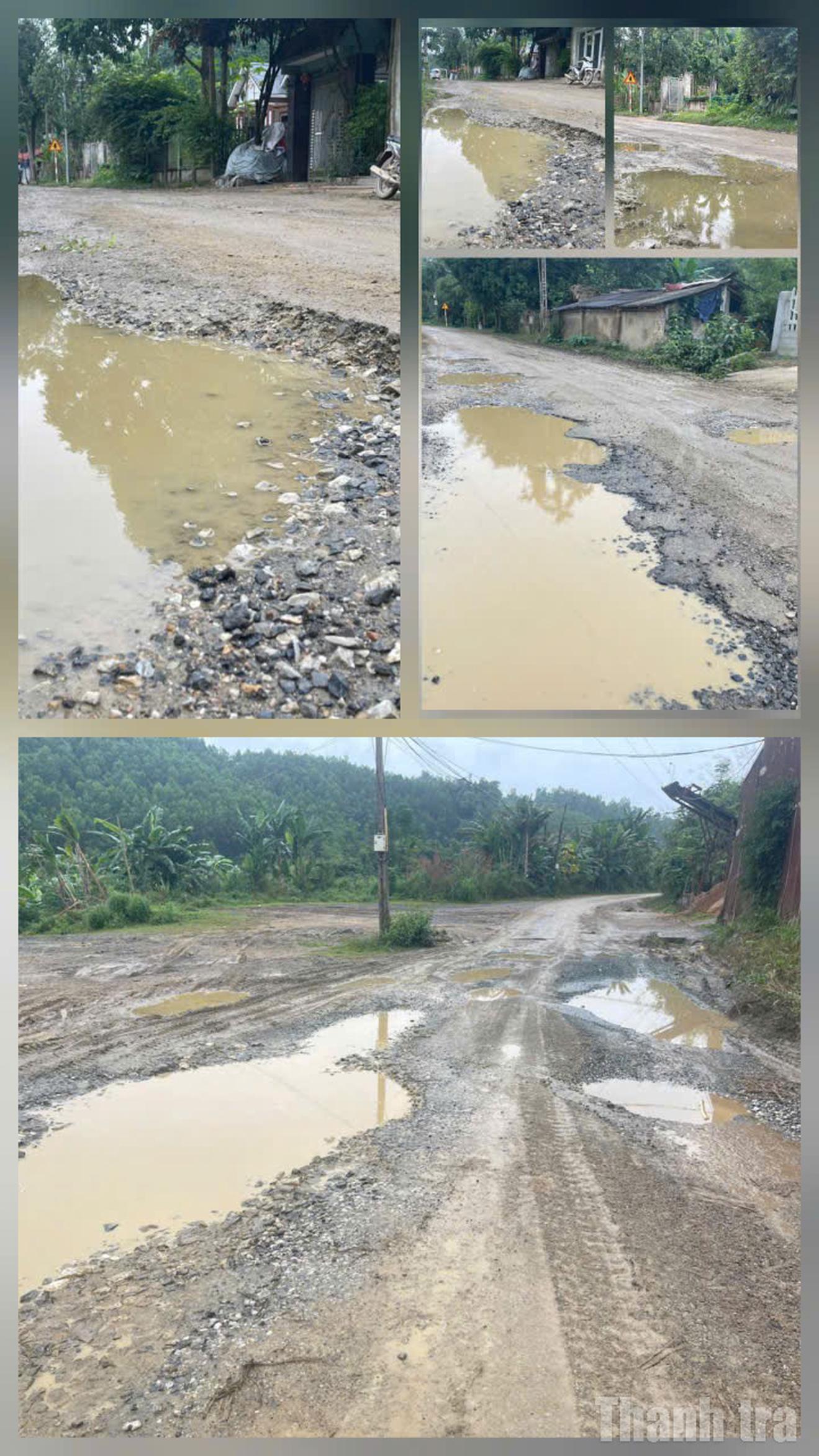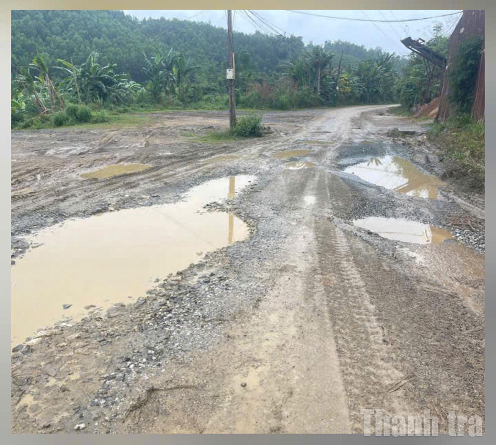 Bên cạnh đó, mật độ phương tiện lưu thông lớn, đặc biệt là xe tải trọng nặng phục vụ sản xuất nông – lâm nghiệp, đã khiến mặt đường vốn đã yếu càng nhanh xuống cấp. Nhiều vị trí bị “cày nát”, tạo thành rãnh sâu chạy dọc theo tuyến.
