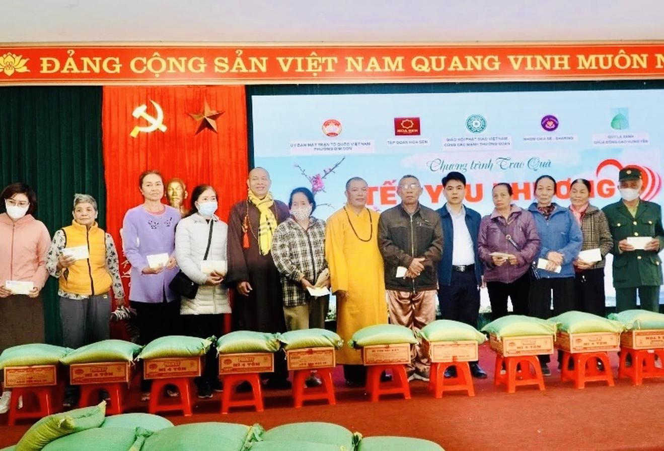 Ban Trị sự Giáo hội Phật giáo Việt Nam cùng các mạnh thường quân, Tập đoàn Hoa Sen, Nhóm chia sẻ - Sharing và Quỹ Lá xanh Chùa Đồng Cao Hưng Yên đã chung sức, đồng hành cùng tỉnh trong các chương trình an sinh xã hội và chăm lo Tết cho người nghèo của tỉnh Thanh Hoá.