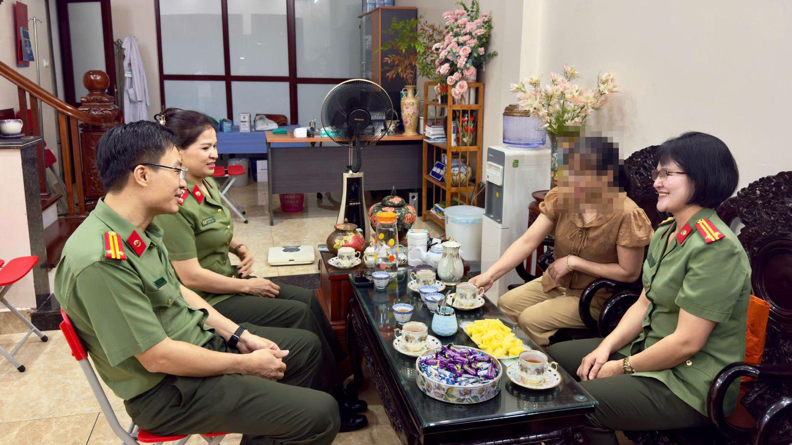 Trung tá Lê Thị Ngà, Phó Giám đốc Nhà nghỉ dưỡng Hương Thanh cùng CBCS tại gia đình chị N.T.N.A .Ảnh: Thạch Lựu