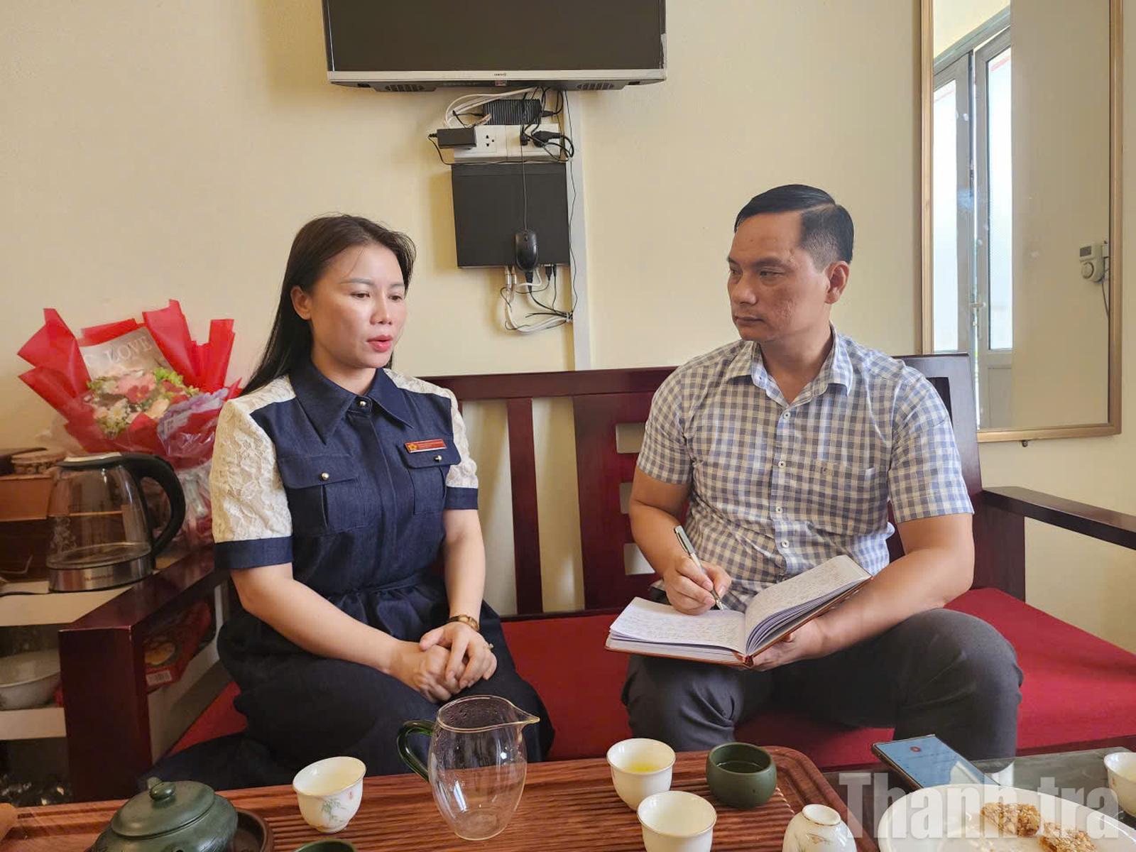 Bà Nguyễn Thị Hằng (trái ảnh), Phó Giám đốc Trung tâm Hành chính công phường Đông Sơn trao đổi với phóng viên Báo Thanh tra. Ảnh: Văn Thanh