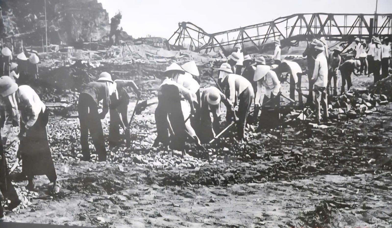 Hình ảnh giặc Mỹ phá cầu Hàm Rồng, dân quân tìm cách khôi phục để chi viện cho tiền tuyến miền Nam. Ảnh: Tư liệu