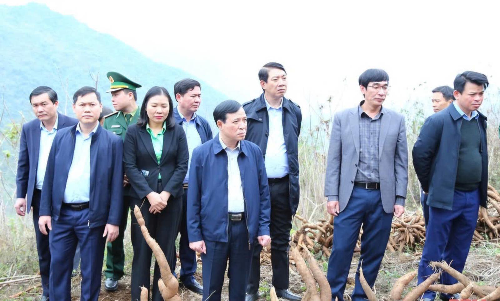Đoàn công tác thăm, động viên đồng bào trồng sắn huyện vùng cao Mường Lát. Ảnh: Quốc Hương