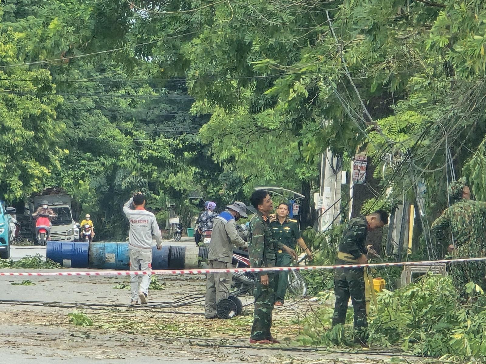 Xử lý cây cối bật gốc để giải cứu đường giao thông ách tắc. Ảnh: P.V