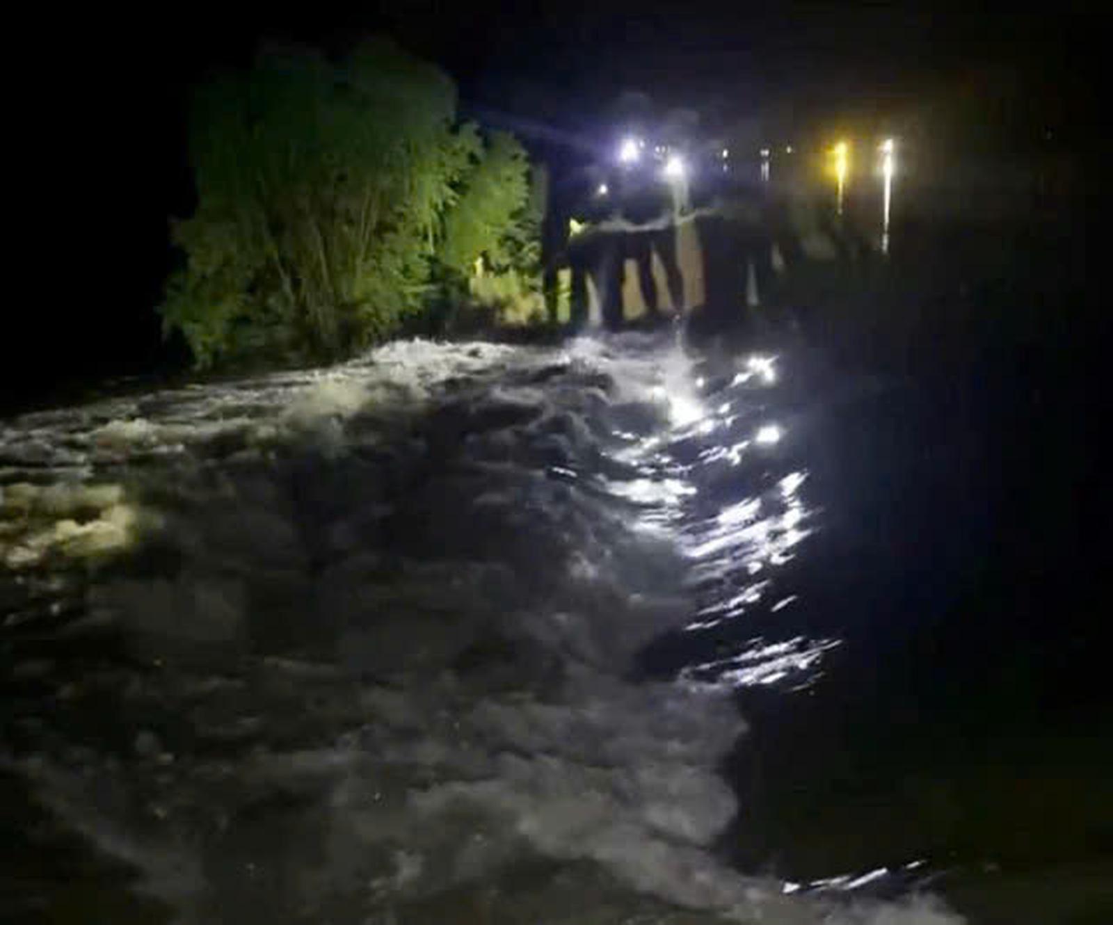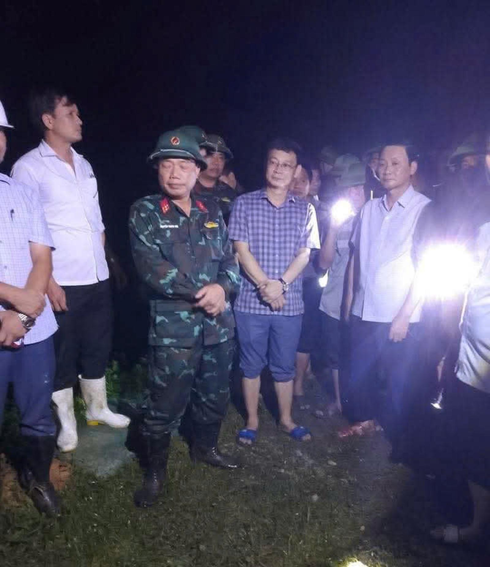 Lực lượng chức năng tỉnh Thanh Hoá tập trung khắc phục sự cố vỡ đê ở xã Tống Sơn trong đêm. Ảnh: UBND xã Tống Sơn