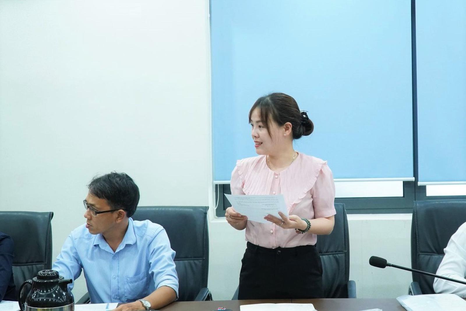 Trưởng phòng Văn hóa, Khoa học và Thông tin thành phố Lâm Hoàng Thùy Trang phát biểu tại buổi làm việc. Ảnh: Cổng TTĐT TP Dĩ An