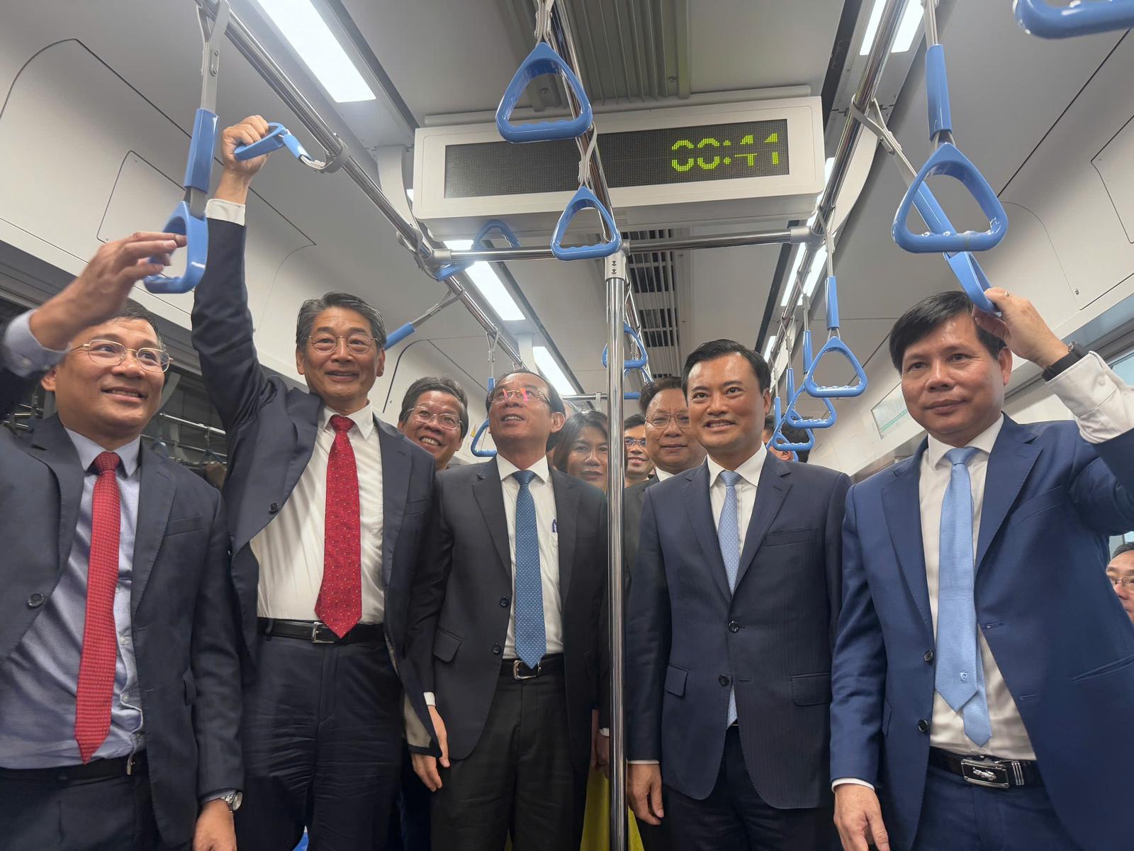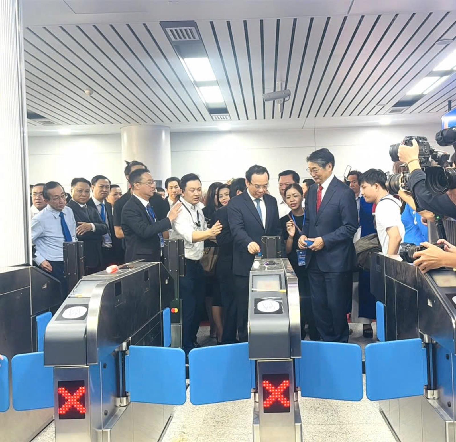Bí thư Thành ủy Thành phố Hồ Chí Minh Nguyễn Văn Nên và Đại sứ Nhật Bản ITO Naoki cùng các đại biểu tham quan, trải nghiệm tuyến metro số 1. Ảnh: TH
