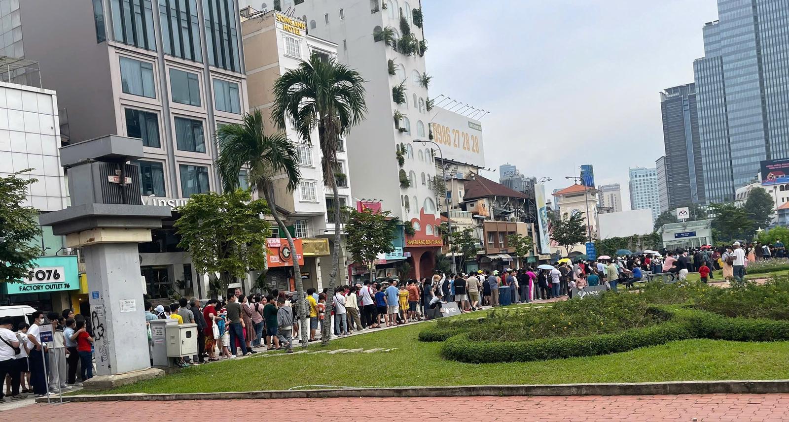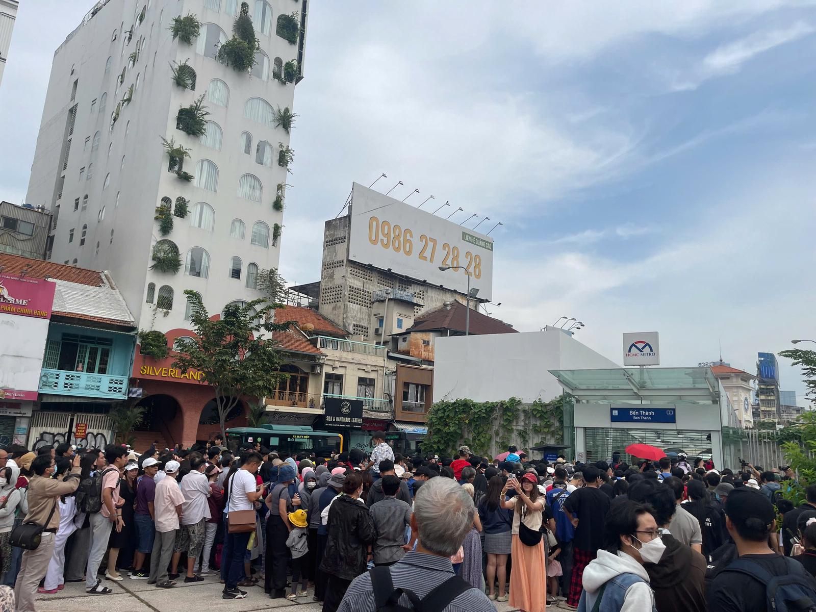 Người dân xếp hàng tại ga Bến Thành để chờ được lên tàu. Ảnh: TH