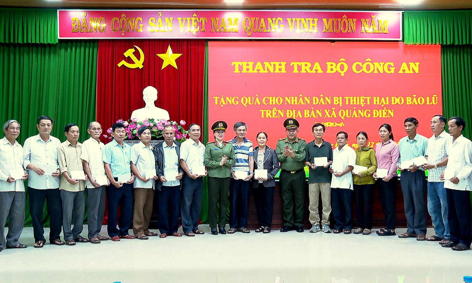 Đại diện người dân địa phương, ông Đoàn Sào, xã Quảng Điền, bày tỏ xúc động và gửi lời cảm ơn sâu sắc đến đoàn công tác Thanh tra Bộ Công an đã kịp thời quan tâm, hỗ trợ bà con trong thời điểm khó khăn nhất sau thiên tai. Đây là nguồn động viên to lớn để bà con Nhân dân cũng như địa phương sớm ổn định đời sống, phục hồi sản xuất.