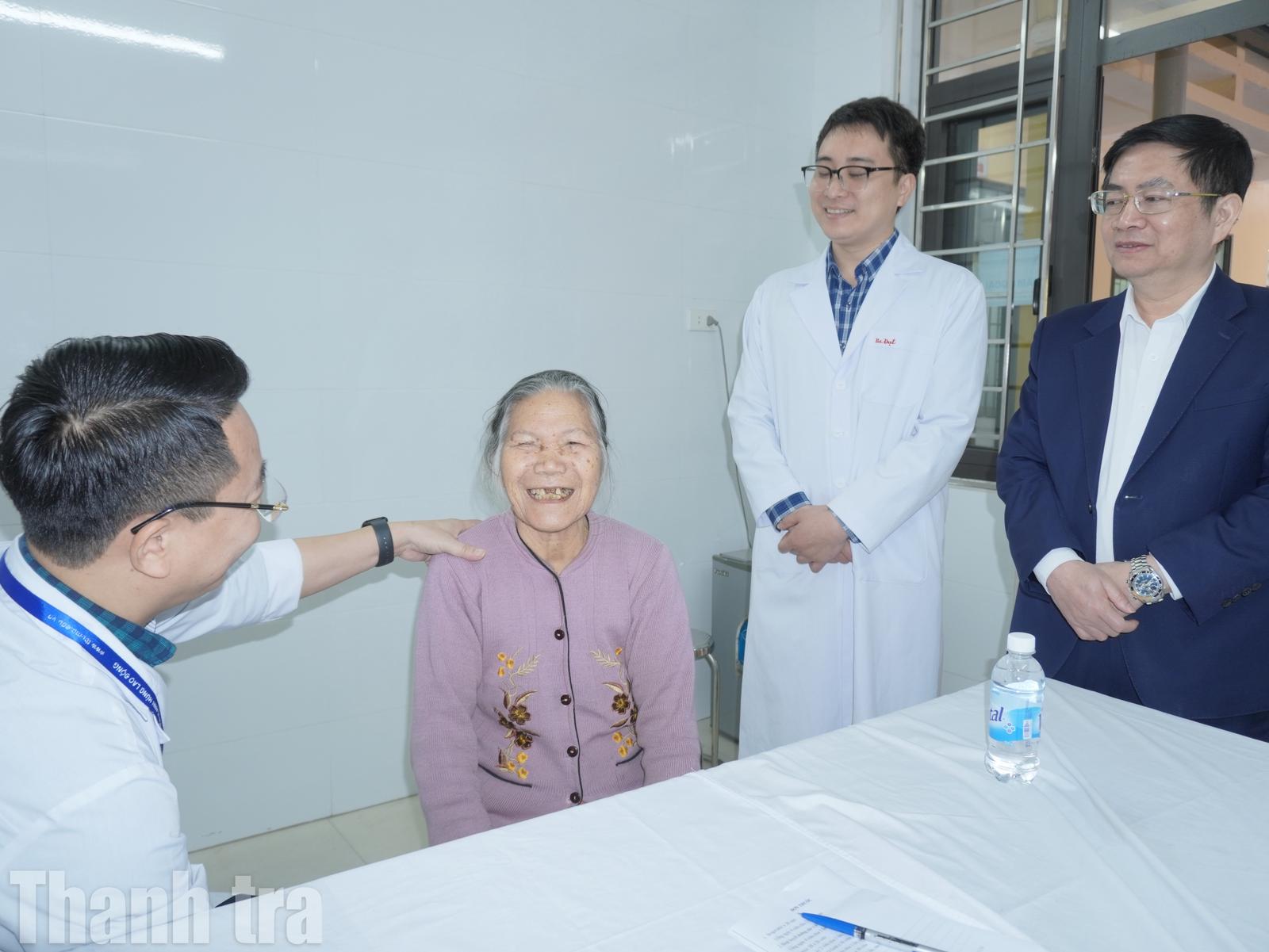 Bà Mai Thị Tằm phấn khởi khi được khám, tư vấn và phát thuốc hỗ trợ điều trị bệnh xương khớp. Ảnh: TM