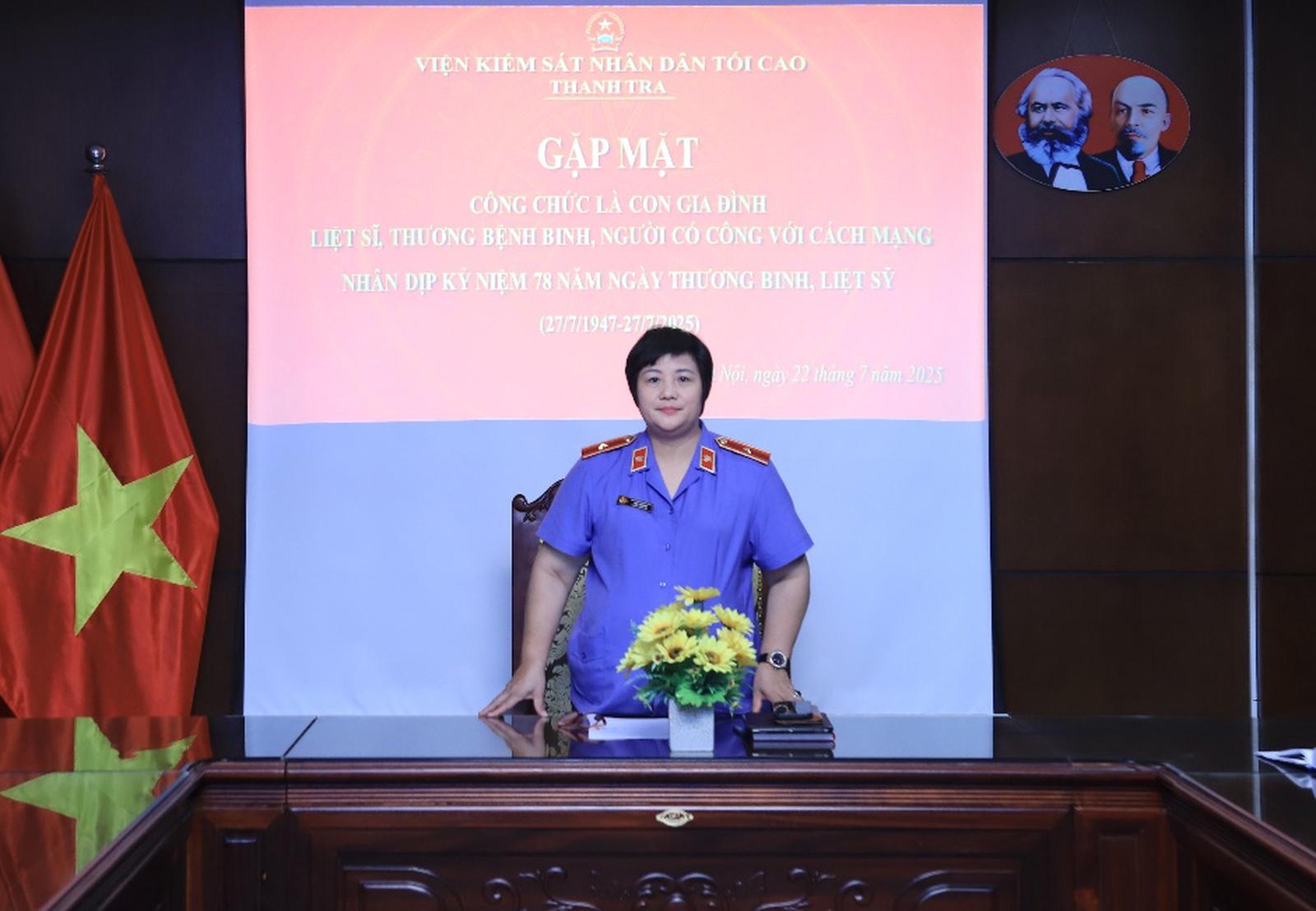 Tại buổi gặp mặt, thay mặt tập thể lãnh đạo Thanh tra Viện KSND Tối cao, bà Mai Thị Nam, Chánh Thanh tra gửi tới các công chức là con của gia đình chính sách lời tri ân sâu sắc về những đóng góp thầm lặng nhưng đầy ý nghĩa cho sự nghiệp xây dựng và phát triển của ngành KSND nói chung và của đơn vị nói riêng.