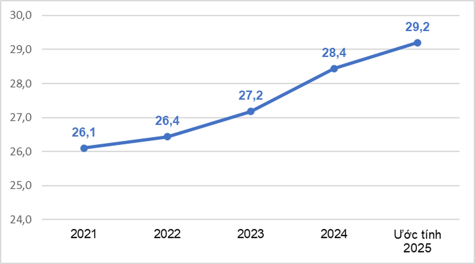 Tỷ lệ lao động qua đào tạo có bằng, chứng chỉ, giai đoạn 2021 - 2025 (%). Ảnh: NSO