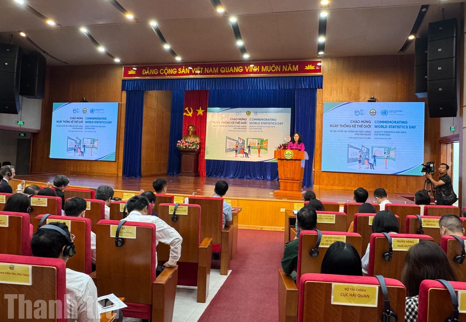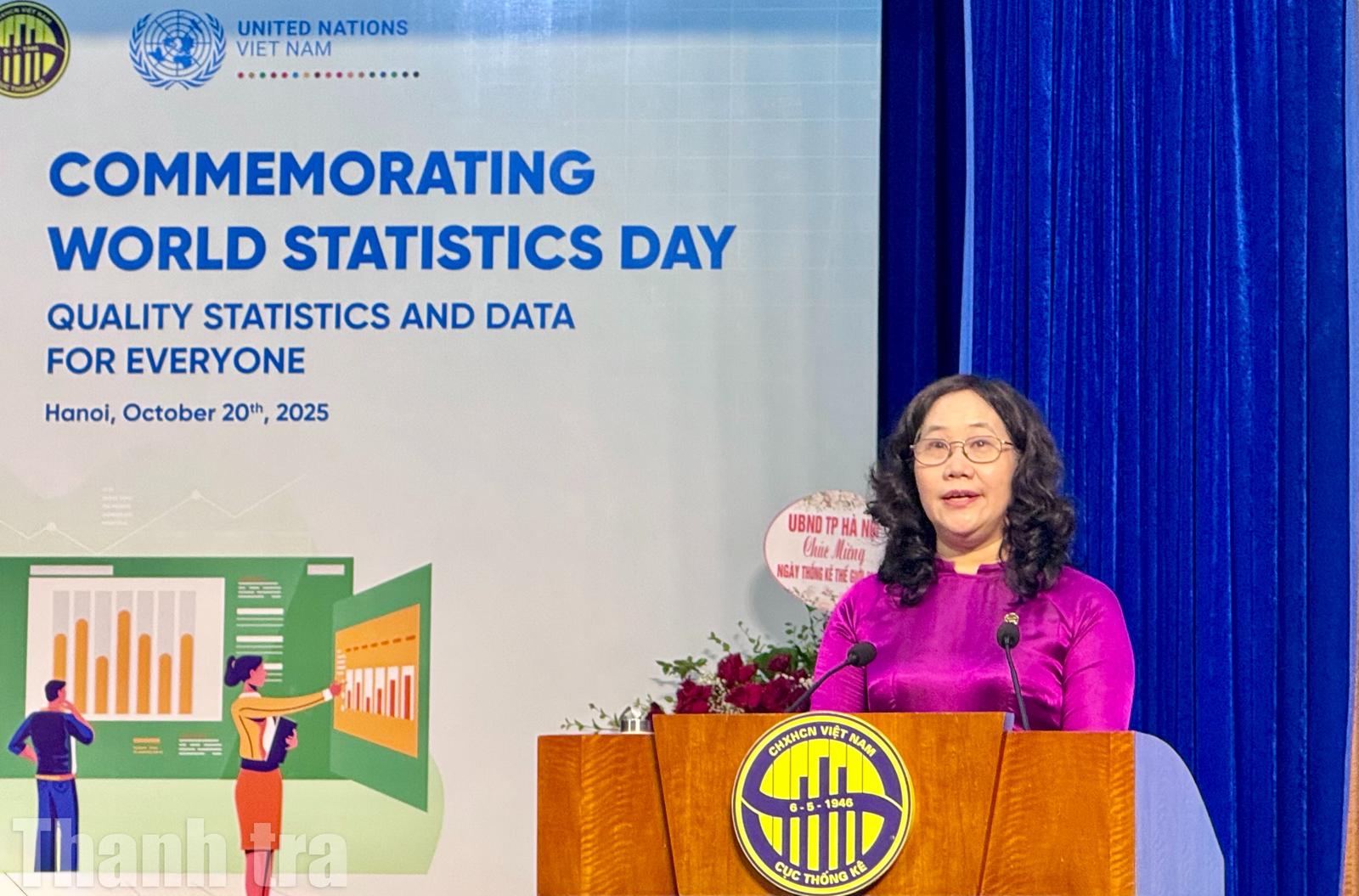 Phát biểu tại buổi lễ, bà Nguyễn Thị Hương, Cục trưởng Cục Thống kê (Bộ Tài chính), cho biết: Ngày 3/6/2010, Đại hội đồng Liên hợp quốc thông qua Nghị quyết 64/267, chọn 20/10 là Ngày Thống kê Thế giới. Năm 2015, Liên hợp quốc quyết định tổ chức sự kiện này 5 năm một lần, với chủ đề toàn cầu năm 2025 là “Thúc đẩy thay đổi bằng dữ liệu và số liệu thống kê chất lượng cho mọi người”.
