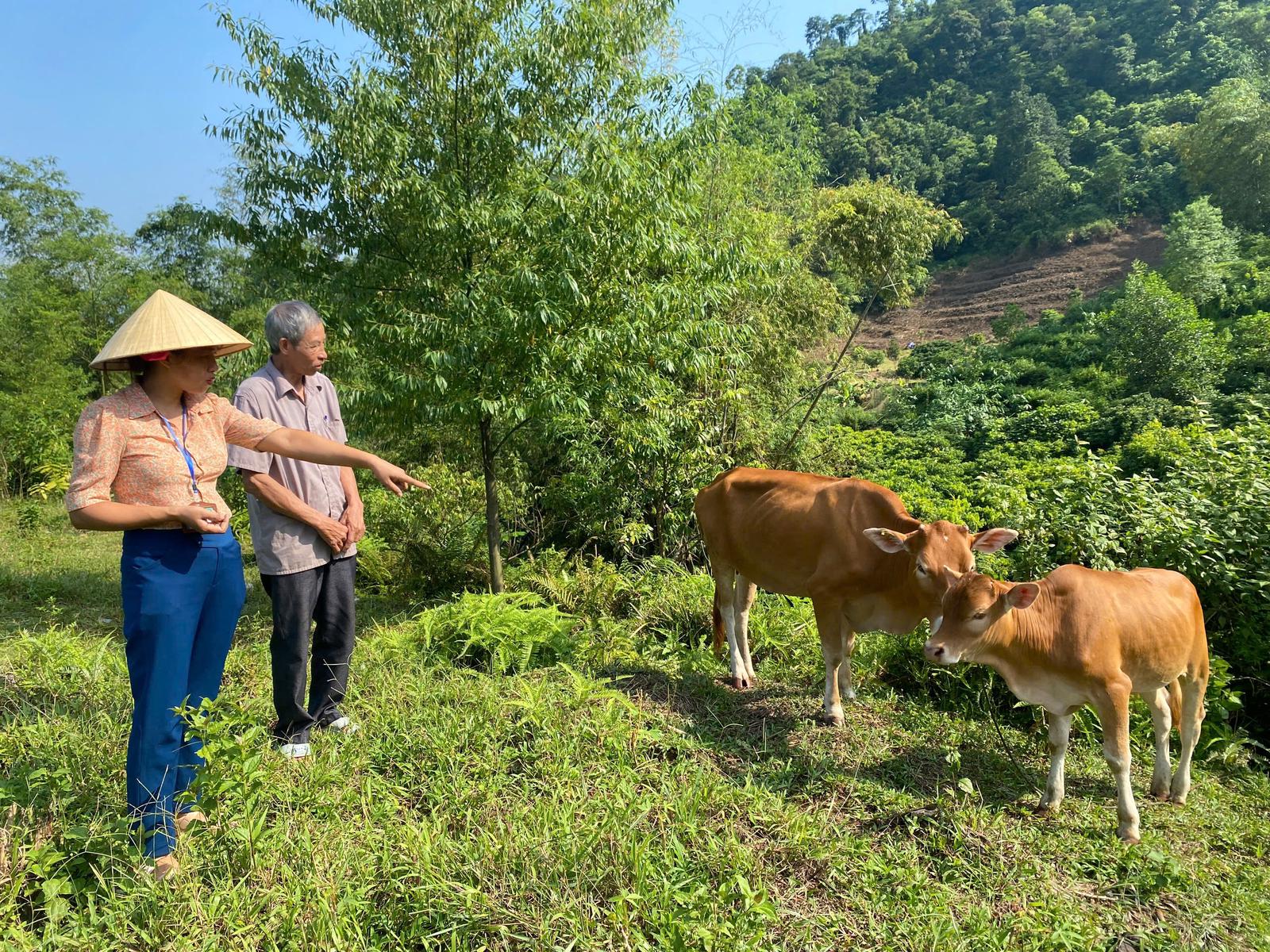 Người dân thôn Minh Thành, xã Trung Thành chăm sóc đàn bò được đầu tư từ Chương trình mục tiêu Quốc gia. Ảnh: Thu Biên