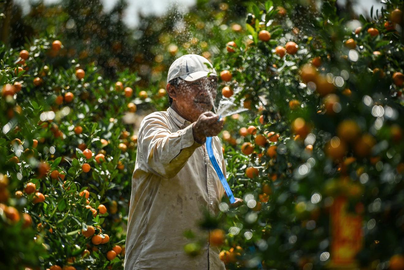 Người dân chăm sóc cây cảnh phục vụ Tết Nguyên đán. Ảnh: Bảo Thắng