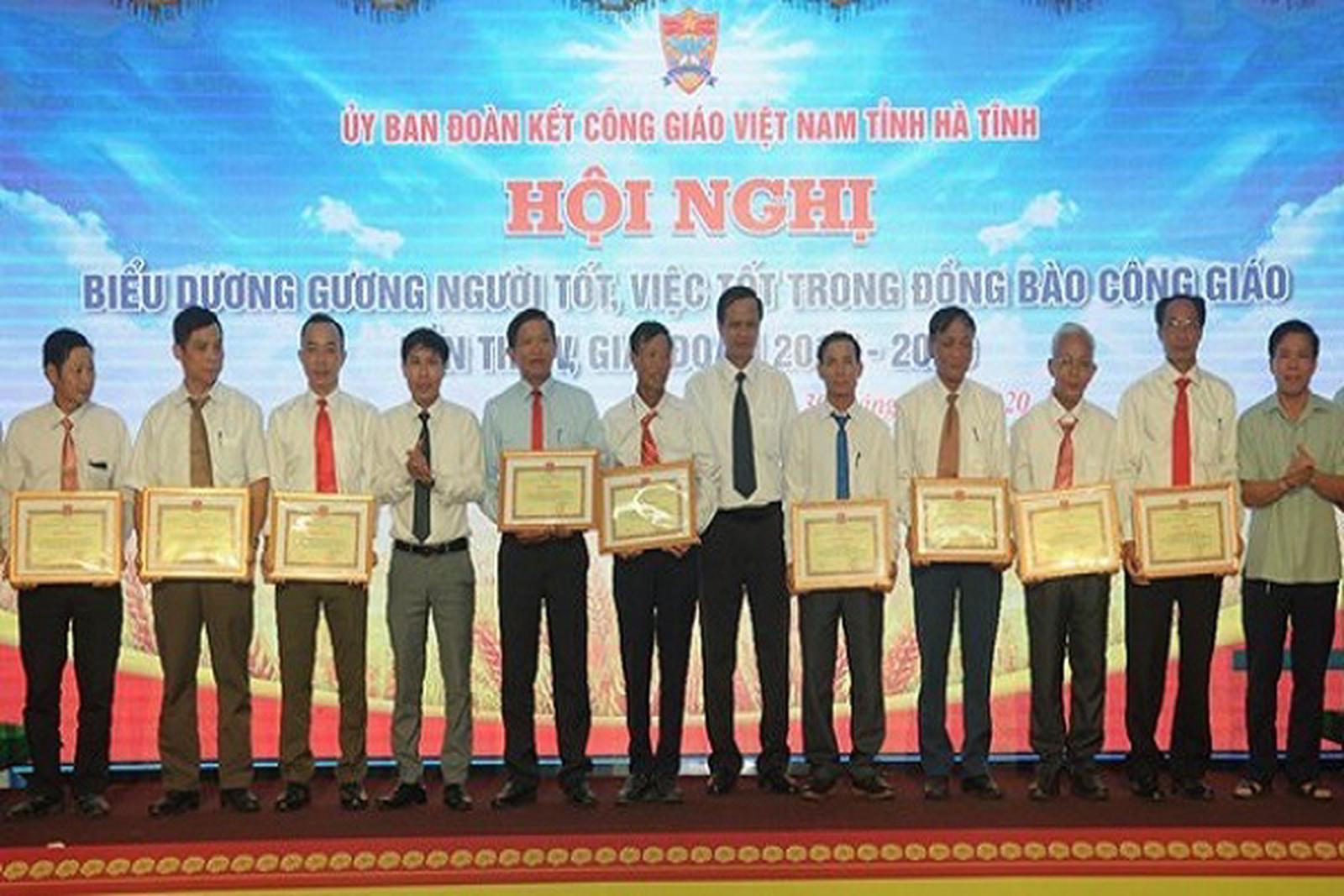 Biểu dương những gương tiên tiến điển hình người Công giáo tỉnh Hà Tĩnh. Ảnh: TQ