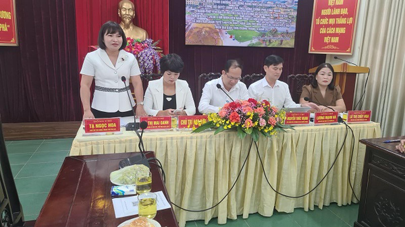 Bà Tạ Ngọc Hoa, Phó Chủ tịch UBND thành phố Yên Bái trả lời câu hỏi của phóng viên. Ảnh: Bùi Bình