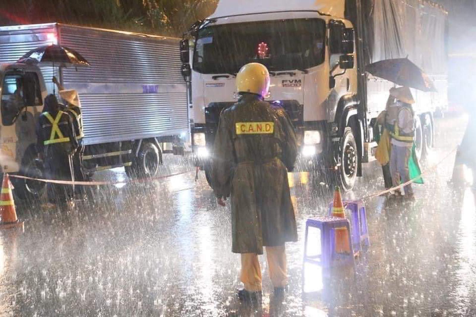 Chốt kiểm soát phòng, chống dịch bệnh số 1 Lâm Đồng dầm mưa chống dịch. Ảnh: CTV