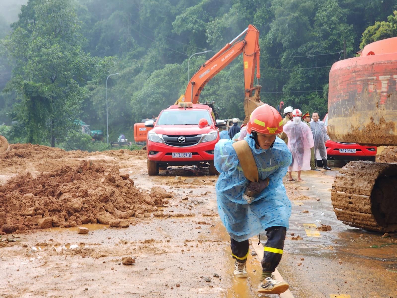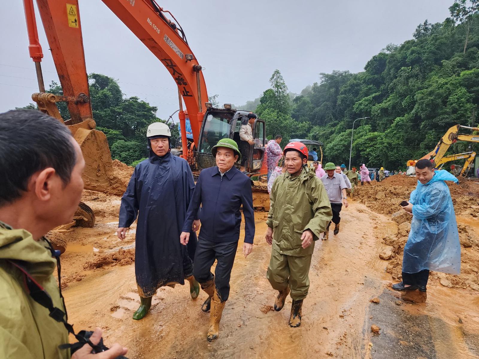 Phó Thủ tướng Trần Lưu Quang có mặt tại hiện trường, trực tiếp chỉ đạo khắc phục hậu quả vụ sạt lở. Ảnh: Vũ Linh