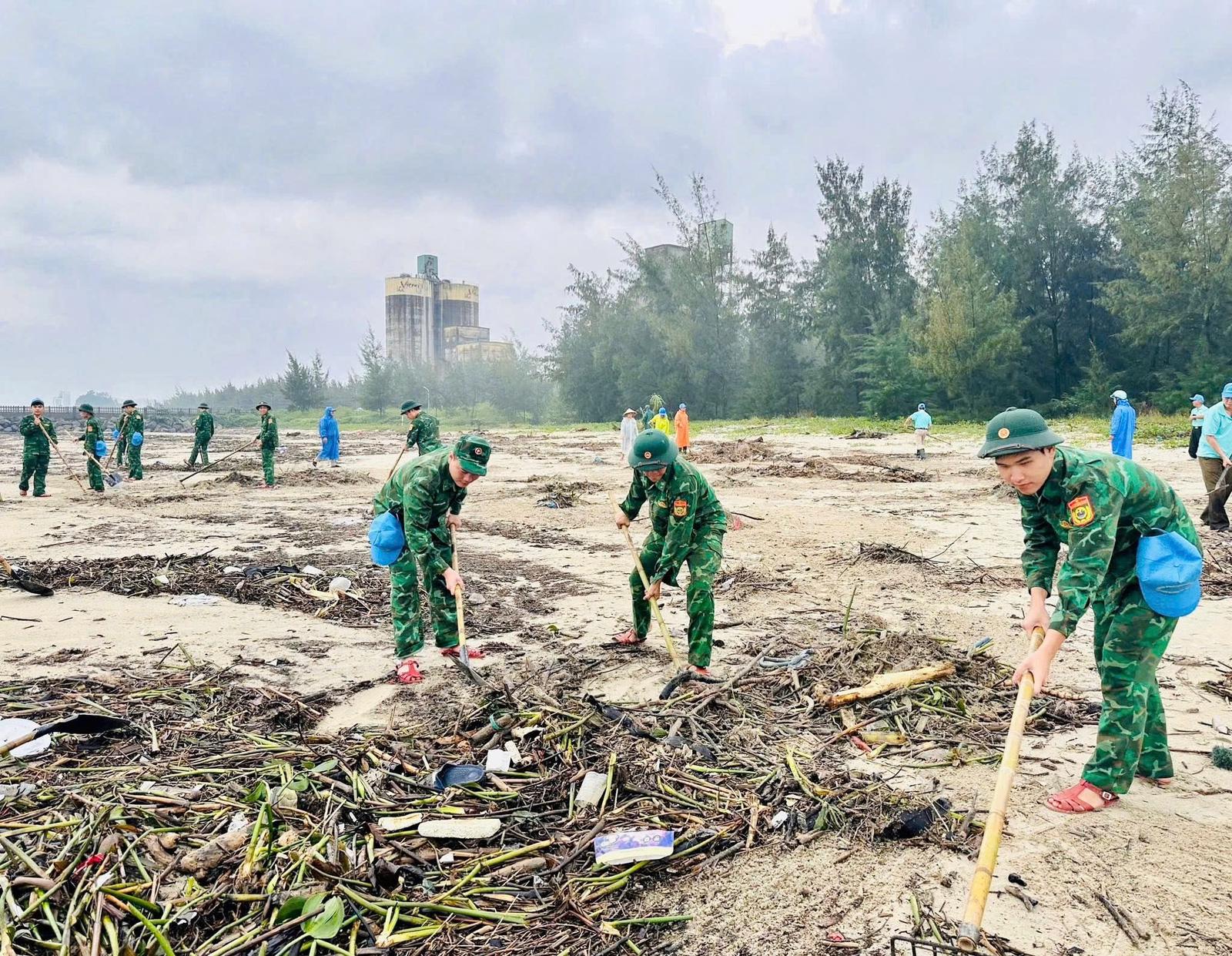 Công tác thu gom rác thải tồn đọng đã được triển khai trên diện rộng, cùng với việc xử lý thực bì và các vật liệu hữu cơ bị cuốn trôi. Một phần công việc trọng tâm là dọn vệ sinh dọc tuyến bãi biển, nơi thường bị rác thải từ biển và từ các khu dân cư dạt vào sau mưa lớn.