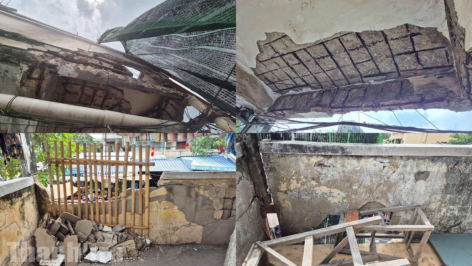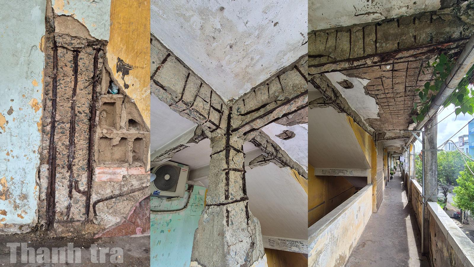 Đặc biệt, tại lô B có xuất hiện thủng sàn bê tông cốt thép và tường lan can tại hành lang lầu 3; lan can và lam bê tông bị hư hỏng nghiêm trọng, bị tách khỏi kết cấu và có khả năng rơi gây nguy hiểm.