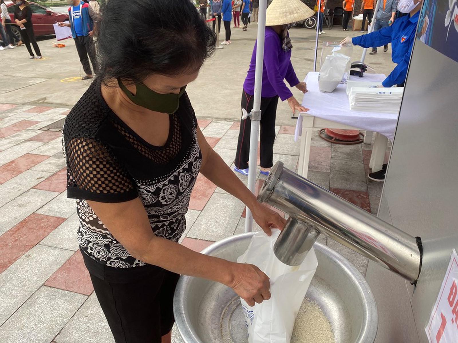 Nhằm chia sẻ với những người gặp khó khăn do ảnh hưởng bởi dịch COVID-19, mỗi người đến đây sẽ nhận được 5kg gạo mỗi lần.