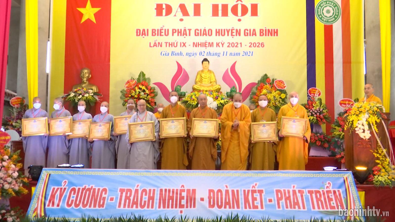 Trên địa bàn huyện Gia Bình có 38 vị tỷ khưu trụ trì 34 ngôi chùa. Trong nhiệm kỳ qua, tăng, ni, Phật tử đã thực hiện phương châm “Đạo pháp - Dân tộc - Chủ nghĩa xã hội” trên tinh thần “Đoàn kết - Hòa hợp - Trưởng dưỡng đạo tâm - Trang nghiêm Giáo hội”. Công tác Phật sự nhiệm kỳ 2016-2021 của Ban Trị sự Giáo hội Phật giáo Việt Nam huyện đạt được nhiều thành quả tốt đẹp, nổi bật là công tác từ thiện quyên góp tiền, gạo, vật phẩm ủng hộ đồng bào khó khăn khi bị thiên tai, ảnh hưởng đại dịch Covid-19. Ban Trị sự Giáo hội Phật giáo Việt Nam huyện đã phối hợp với các địa phương phát nguyện công được hàng chục tỷ đồng trùng tu, sửa chữa các cơ sở thờ tự.