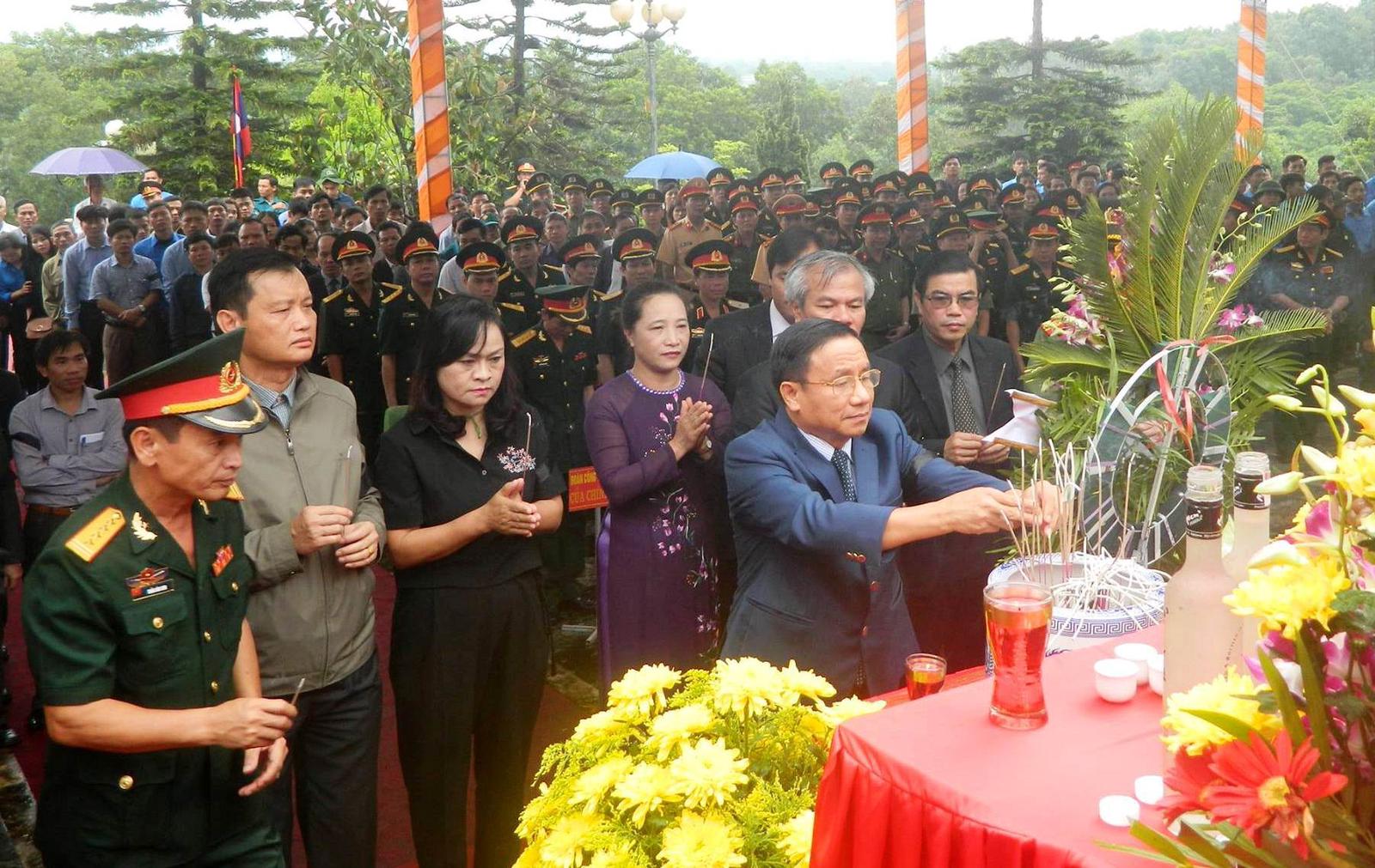 (Thanh tra) - Sáng 19/5, tại Nghĩa trang Liệt sỹ quốc gia Nầm, huyện Hương Sơn, UBND tỉnh Hà Tĩnh đã tổ chức trọng thể lễ truy điệu và an táng 12 hài cốt liệt sỹ là quân tình nguyện và chuyên gia Việt Nam hy sinh tại Lào.
