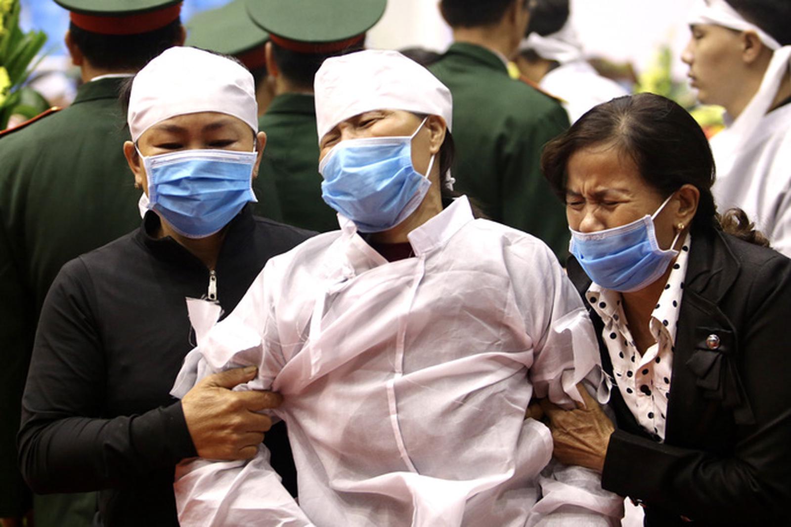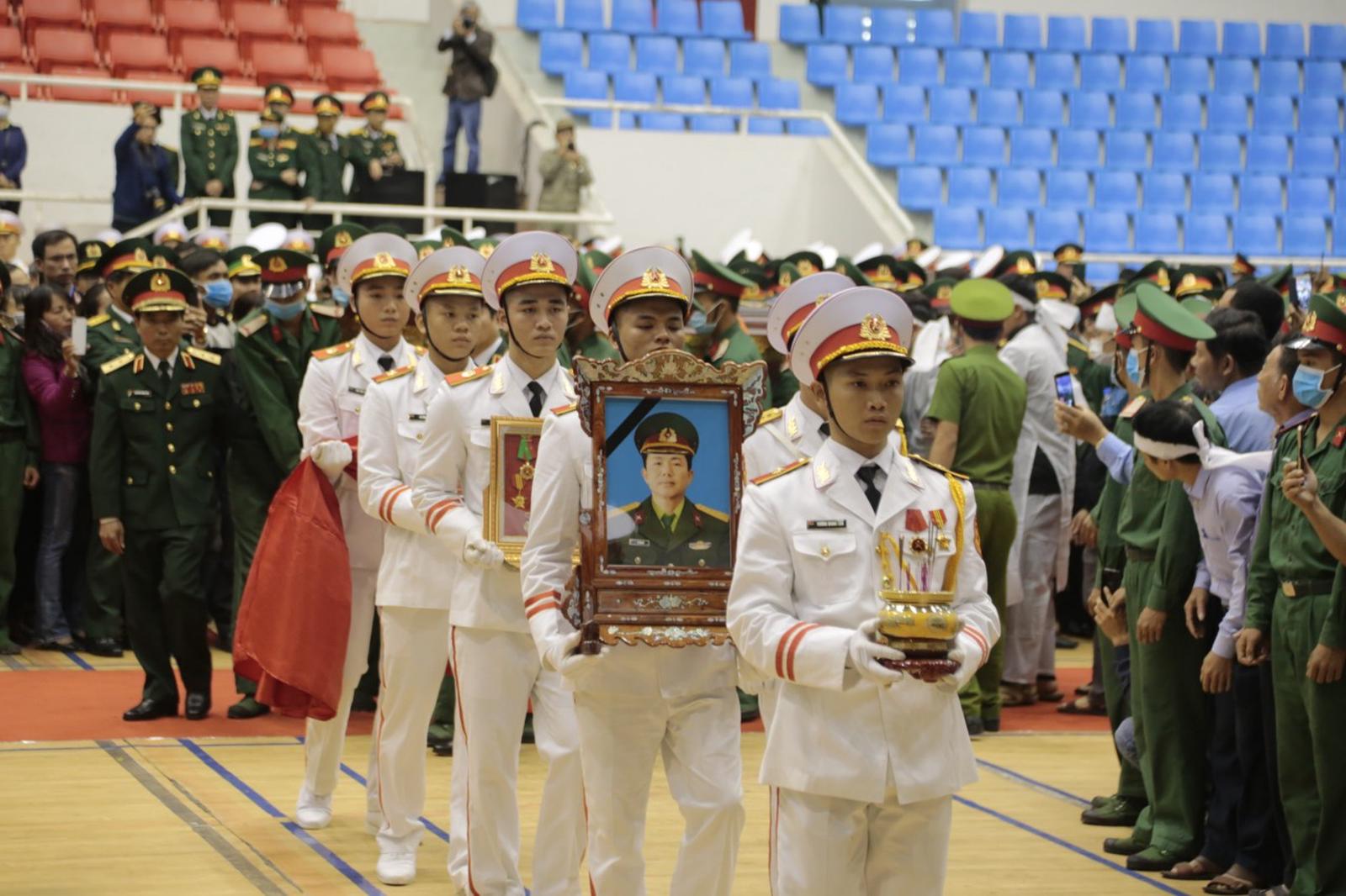Lễ viếng được tổ chức trang trọng trong nỗi đau thương của gia đình, đồng chí, đồng đội và nhân dân.