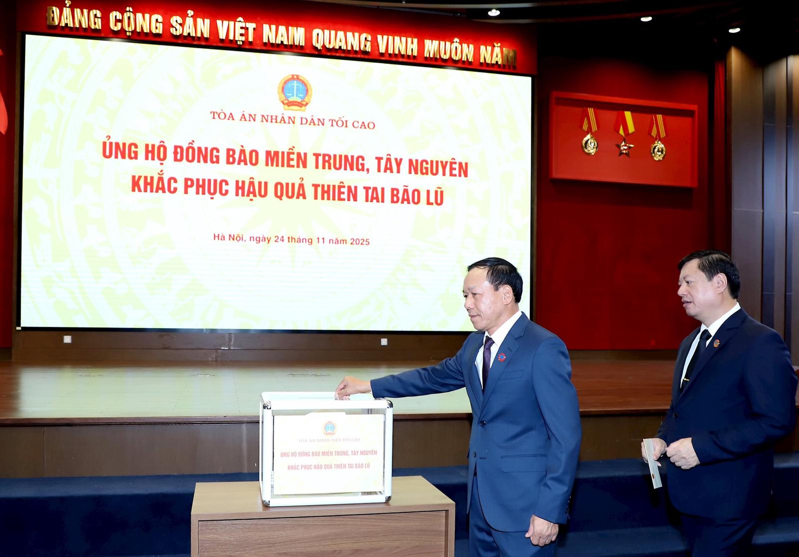 Hưởng ứng lời kêu gọi của Chủ tịch Ủy ban Trung ương Mặt trận Tổ quốc Việt Nam, lãnh đạo TAND tối cao phát động chương trình cán bộ, công chức, viên chức và người lao động trong toàn ngành TAND ủng hộ ít nhất 1 ngày lương để giúp đồng bào các tỉnh miền Trung và Tây Nguyên khắc phục hậu quả mưa lũ, sớm ổn định cuộc sống, khôi phục sản xuất, trở lại sinh hoạt bình thường.