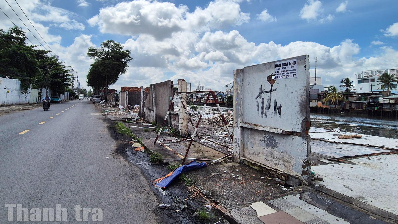Theo ghi nhận của phóng viên, nhiều căn nhà ven bờ Bắc kênh Đôi đã được tháo dỡ để bàn giao mặt bằng cho dự án. Ảnh: CN