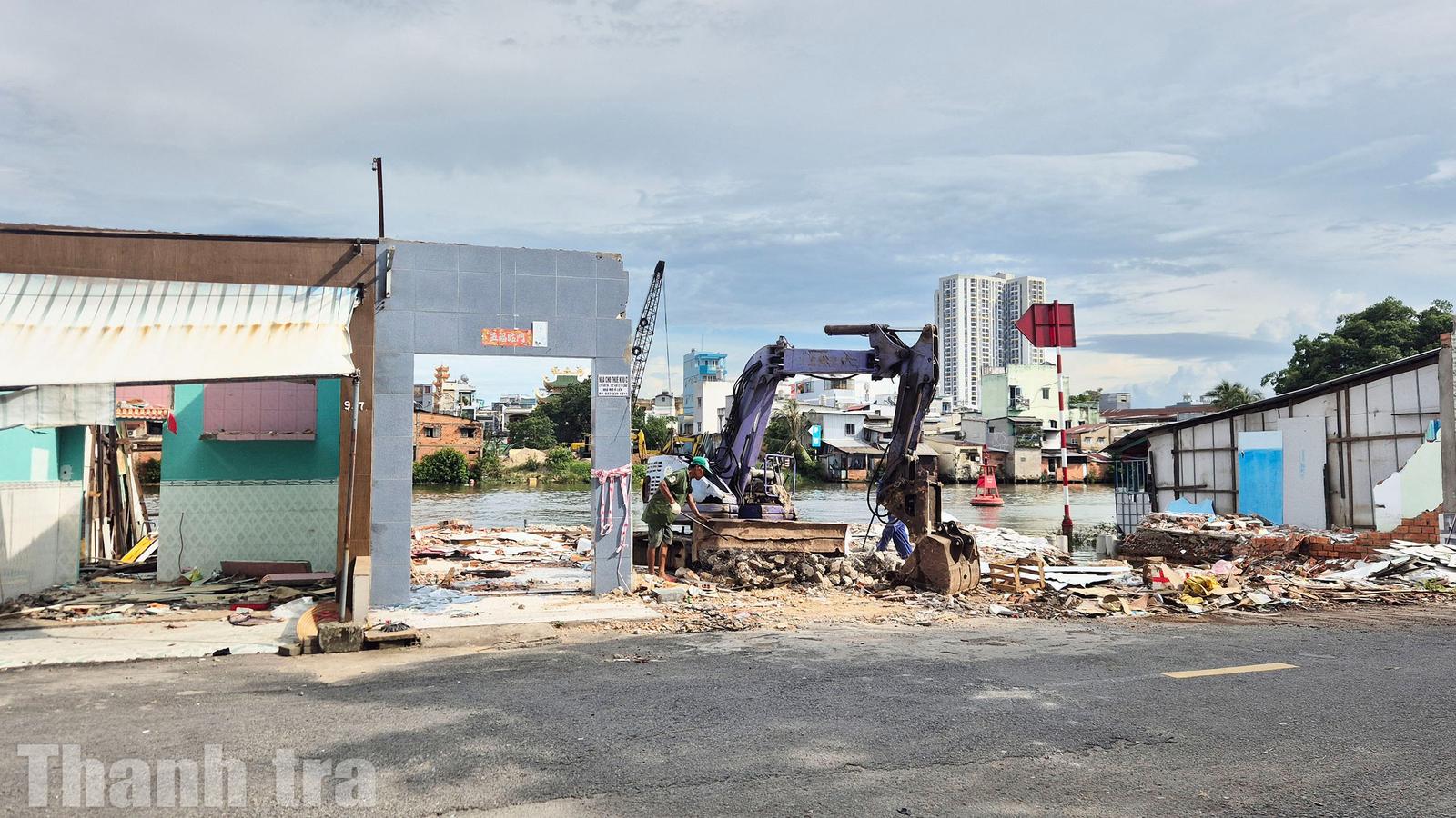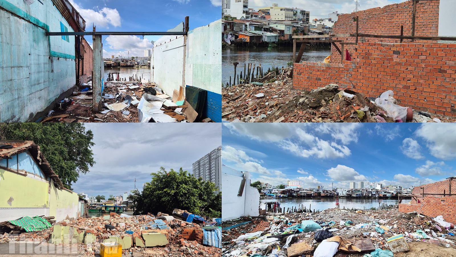 Nhiều căn nhà ven bờ Bắc kênh Đôi đã tháo dỡ xong. Ảnh: CN