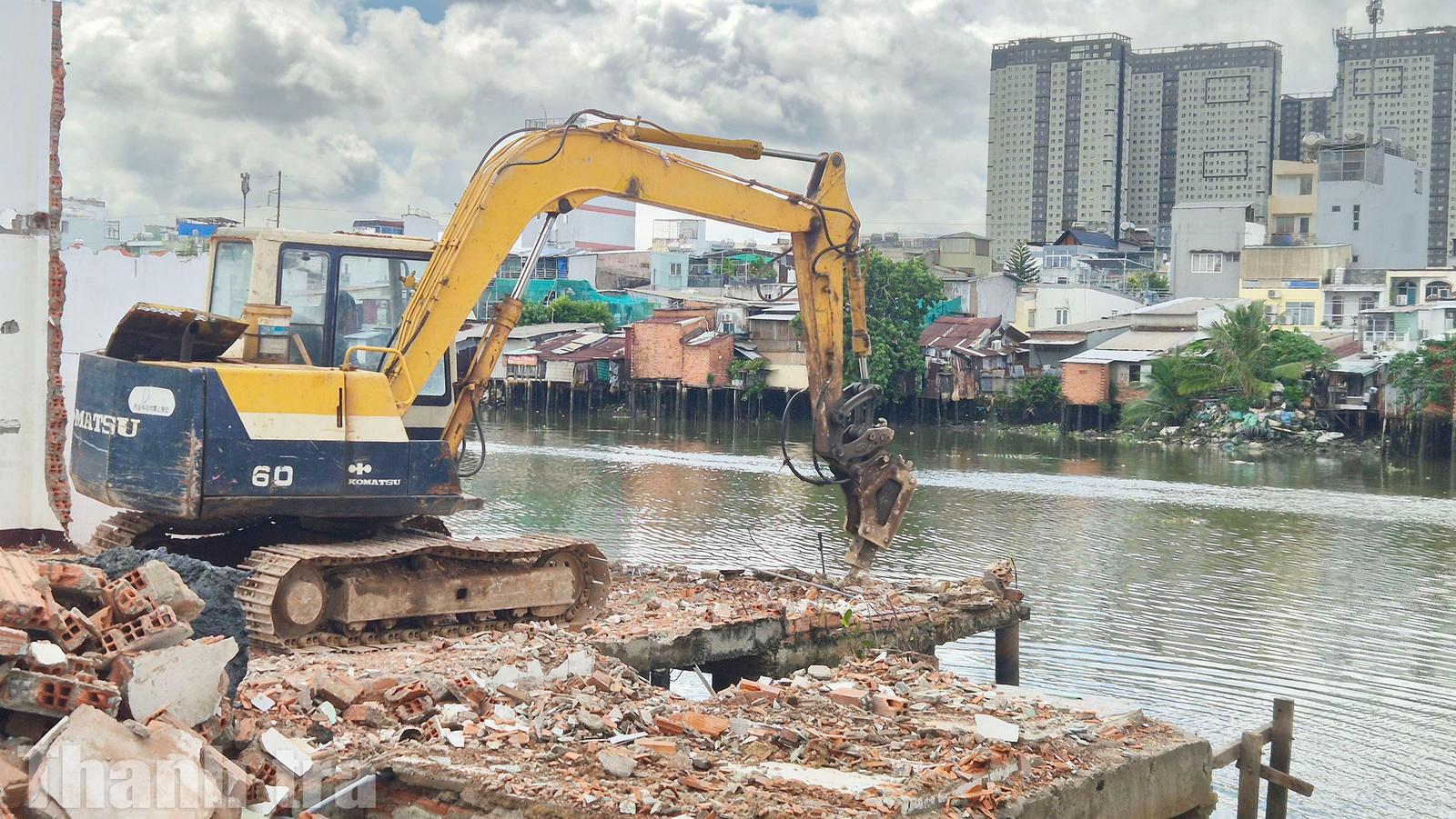 Nhiều căn nhà ven bờ Bắc kênh Đôi đã được tháo dỡ để bàn giao mặt bằng cho dự án. Ảnh: CN