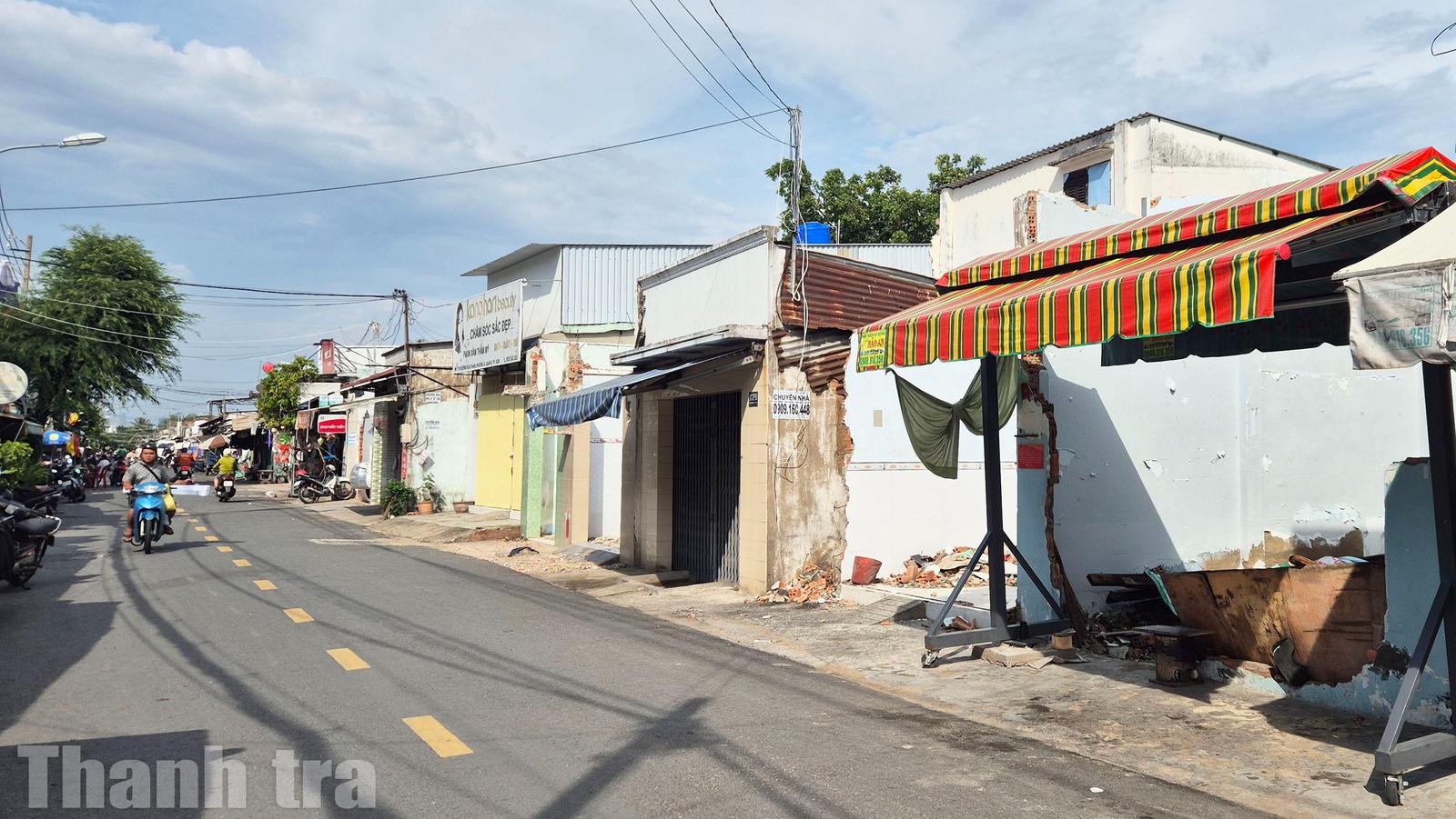 Dãy nhà trên đường Hoài Thanh thuộc phường Phú Định đã thu dọn đồ đạc bàn giao mặt bằng cho dự án. Ảnh: CN