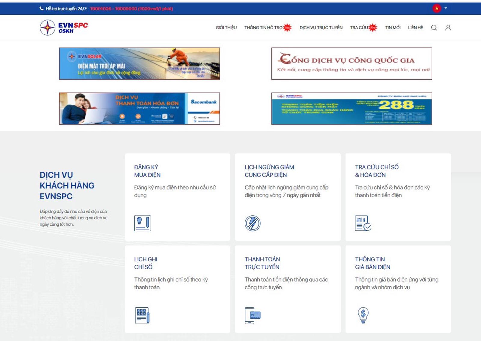 Khách hàng tại khu vực miền Nam có thể truy cập vào trang web https://cskh.evnspc.vn để sử dụng các dịch vụ điện trực tuyến