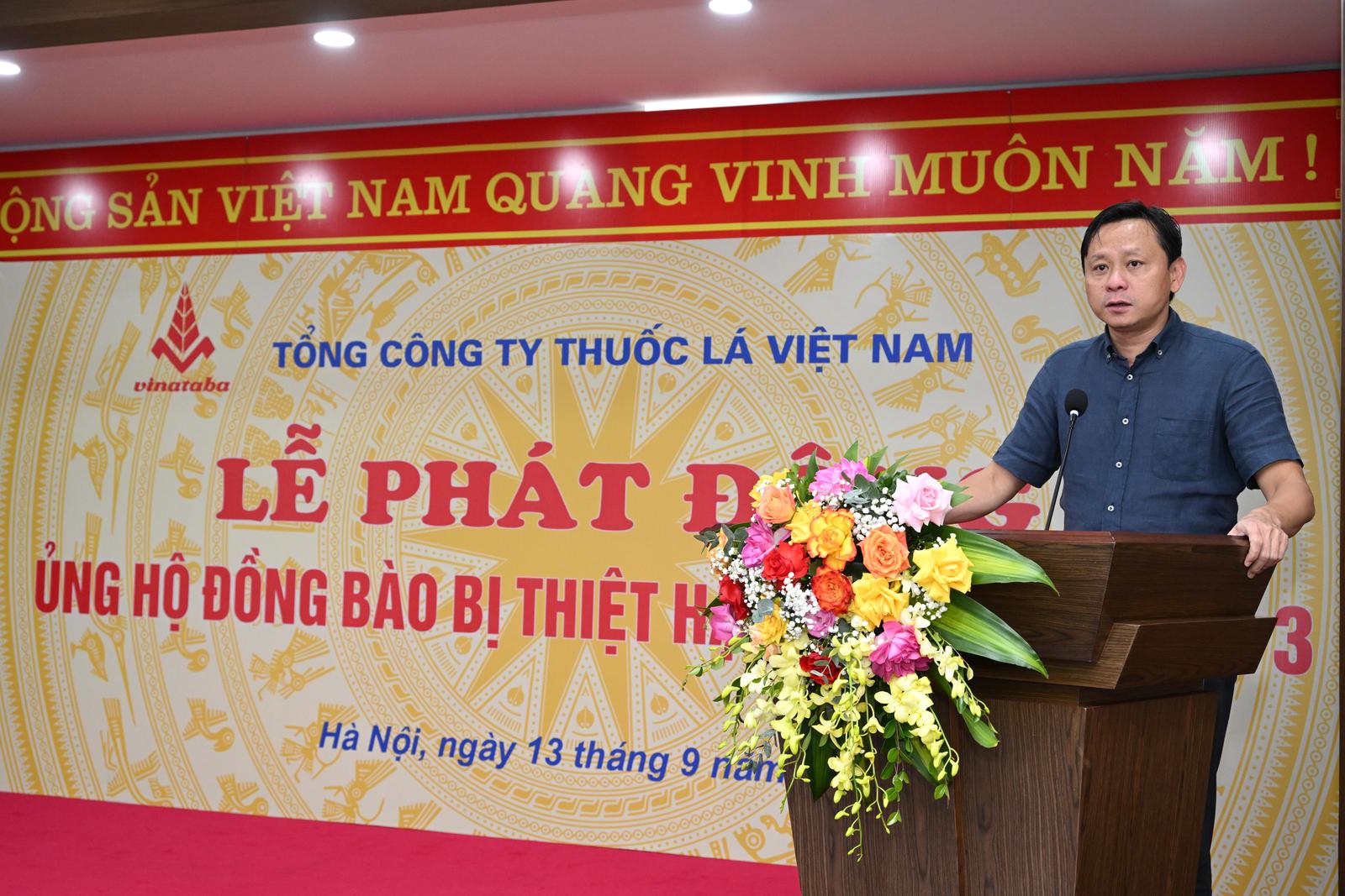 Chủ tịch Hội đồng Thành viên Tổng Công ty Thuốc lá Việt Nam Hồ Lê Nghĩa phát biểu tại buổi lễ. Ảnh: TH