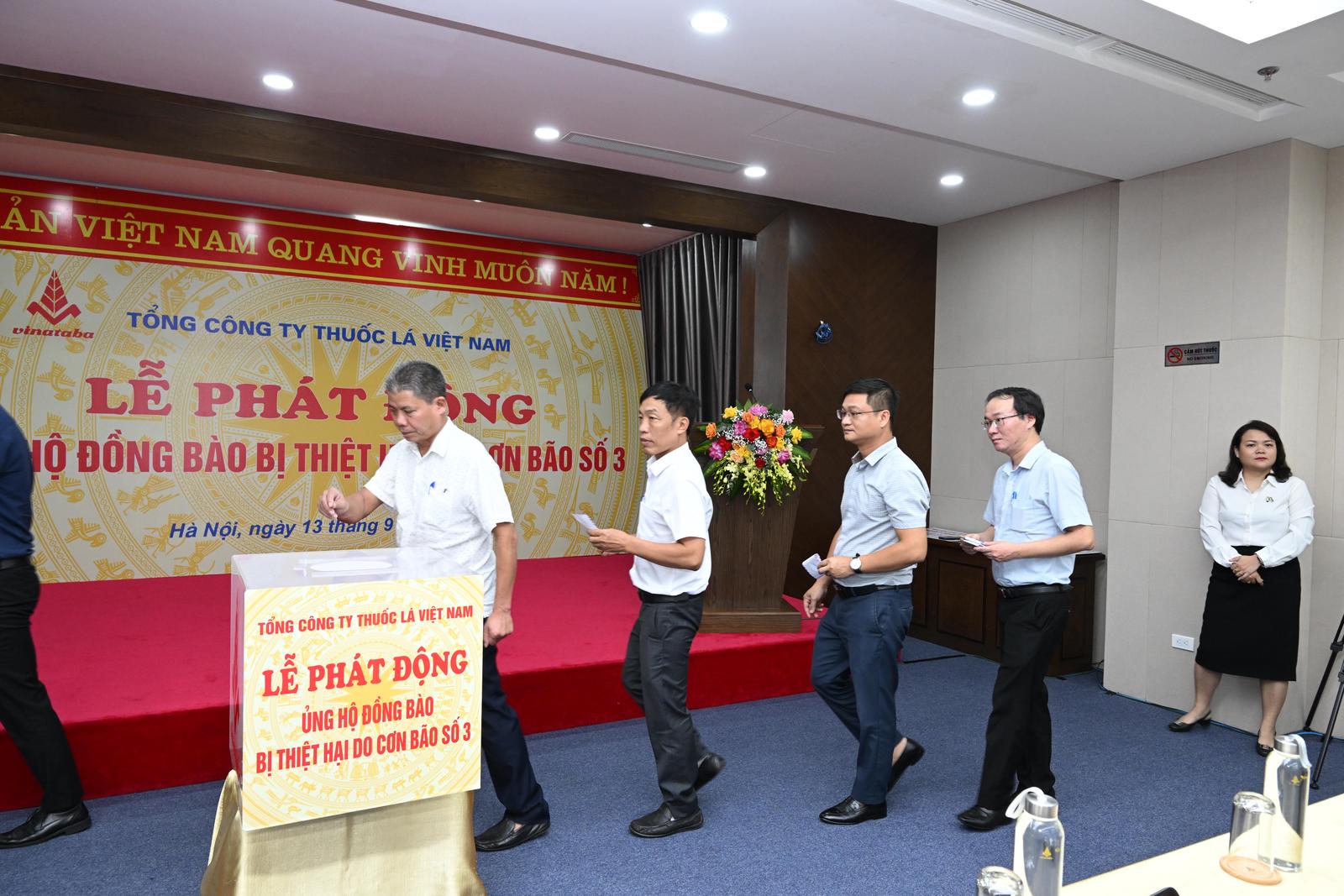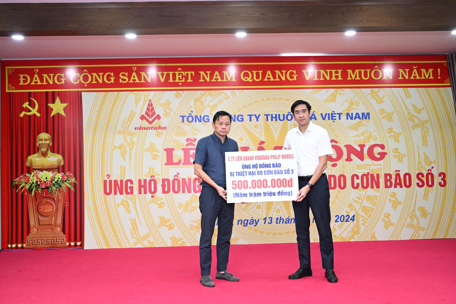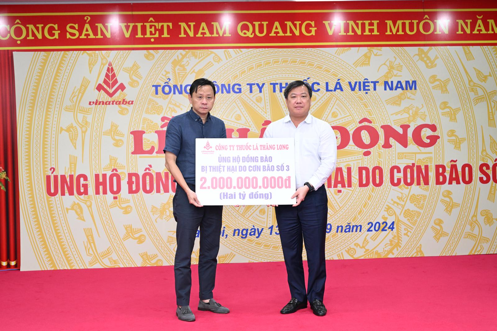 Tổng Công ty Thuốc lá Việt Nam quyên góp 10 tỷ đồng ủng hộ đồng bào bị lũ lụt do cơn bão số 3. Ảnh: TH