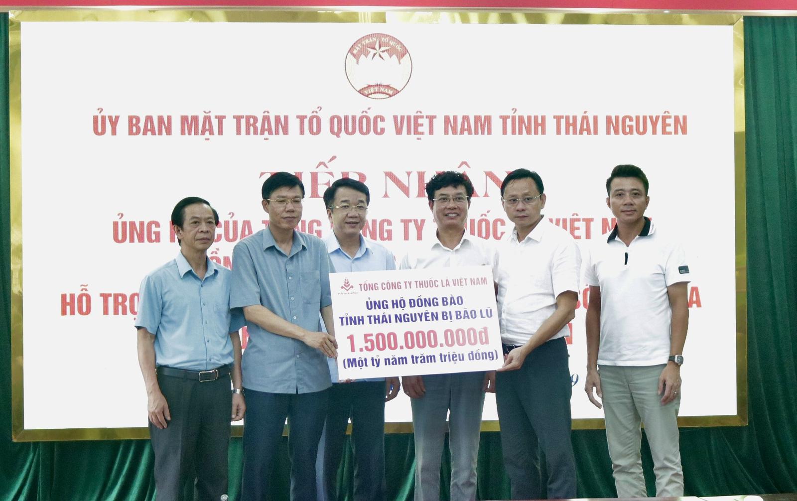 (Thanh tra) - Chiều ngày 16/9, tại Ủy ban MTTQ Việt Nam tỉnh Thái Nguyên diễn ra buổi tiếp nhận ủng hộ của Tổng Công ty Thuốc lá Việt Nam đồng hành cùng Báo Thanh tra hỗ trợ nhân dân Thái Nguyên bị thiệt hại do cơn bão số 3 (Yagi) gây ra với số tiền 1,5 tỷ đồng.