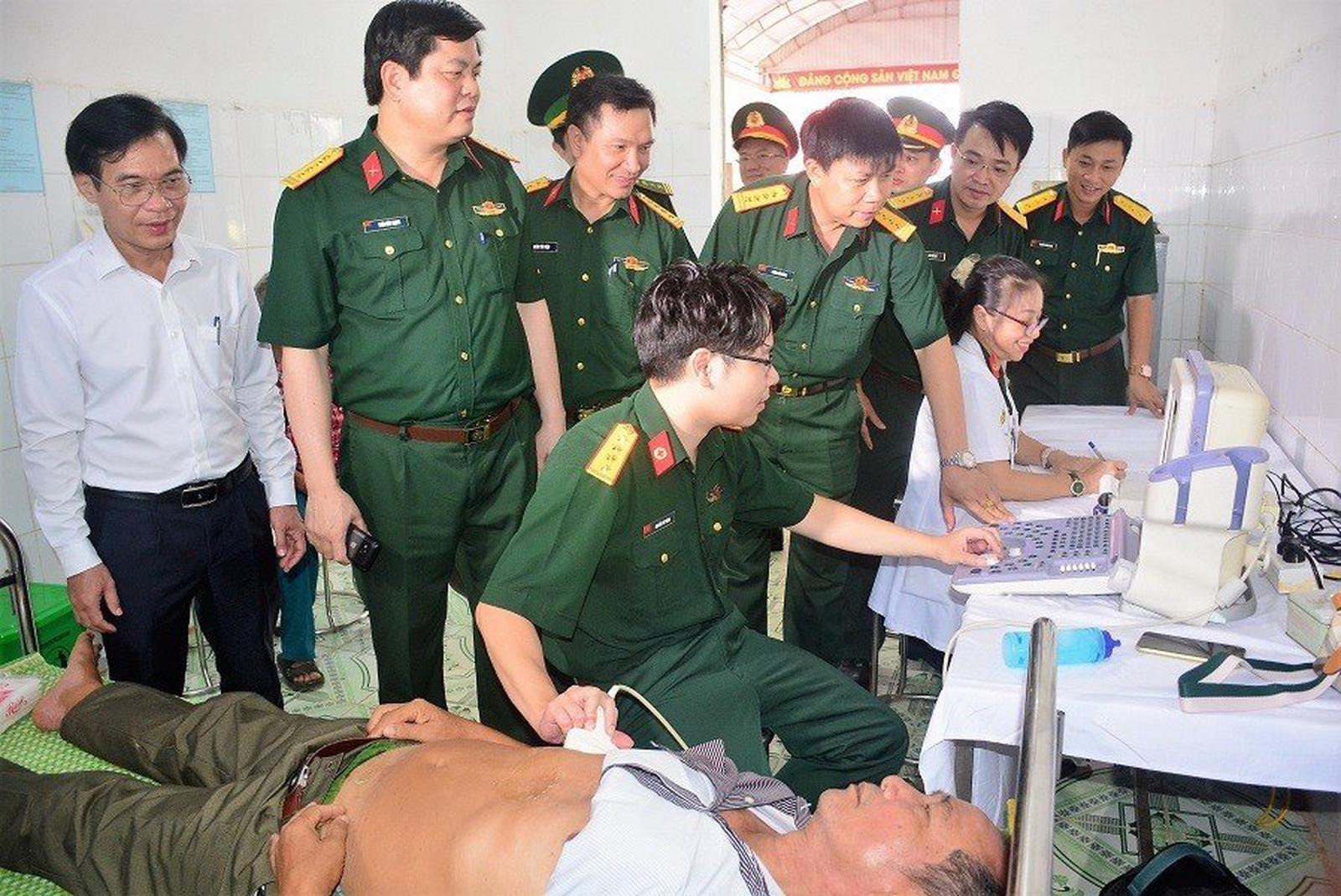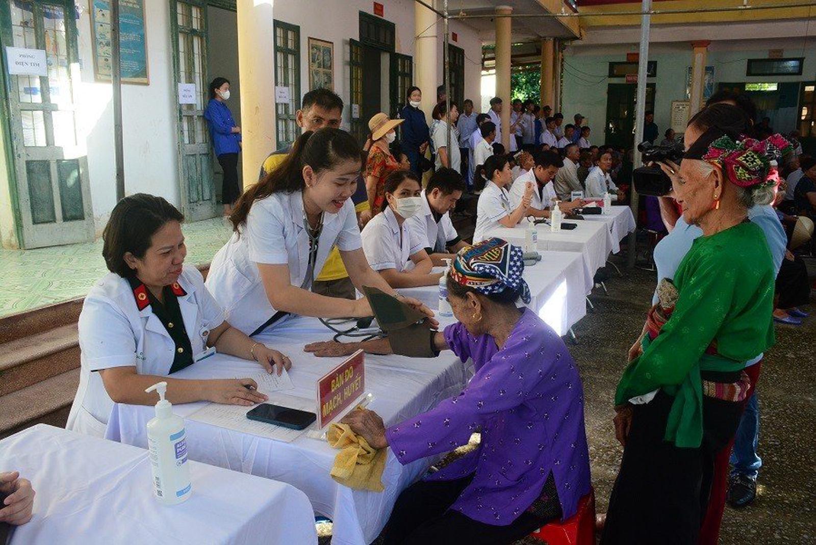 Bác sĩ Học viện Quân y khám bệnh cho đối tượng chính sách tại huyện Thạch Thành. Ảnh: Hương Trà