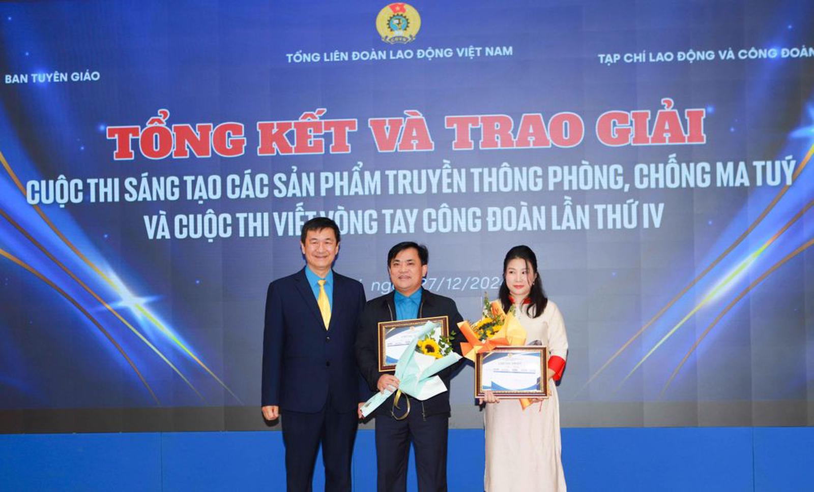 (Thanh tra) - Chiều 27/12, Tổng Liên đoàn Lao động Việt Nam tổ chức Lễ trao giải cho hai cuộc thi viết "Vòng tay Công đoàn" lần thứ IV và Cuộc thi "Sáng tạo sản phẩm truyền thông về Phòng chống ma túy".