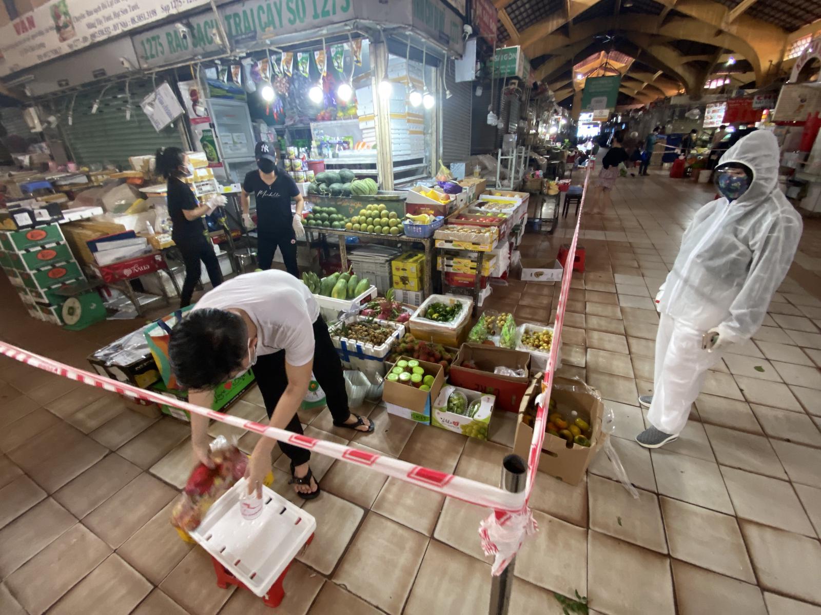 Ngày 7/10, theo ghi nhận của phóng viên, 79 gian hàng đã được mở bán, chủ yếu kinh doanh rau củ quả, thịt, cá và khu ăn uống. Tiểu thương và người dân đi chợ từ sớm, không khí trong chợ bắt đầu nhộn nhịp trở lại sau thời gian dài giãn cách xã hội. Người dân và tiểu thương ra vào chợ đều phải có thẻ xanh Covid-19, khai báo y tế, khử khuẩn và đo nhiệt độ. Khách hàng mua bán qua vách ngăn chắn giọt bắn, để tiền vào rổ rồi nhận hàng.