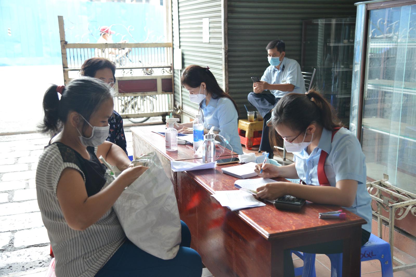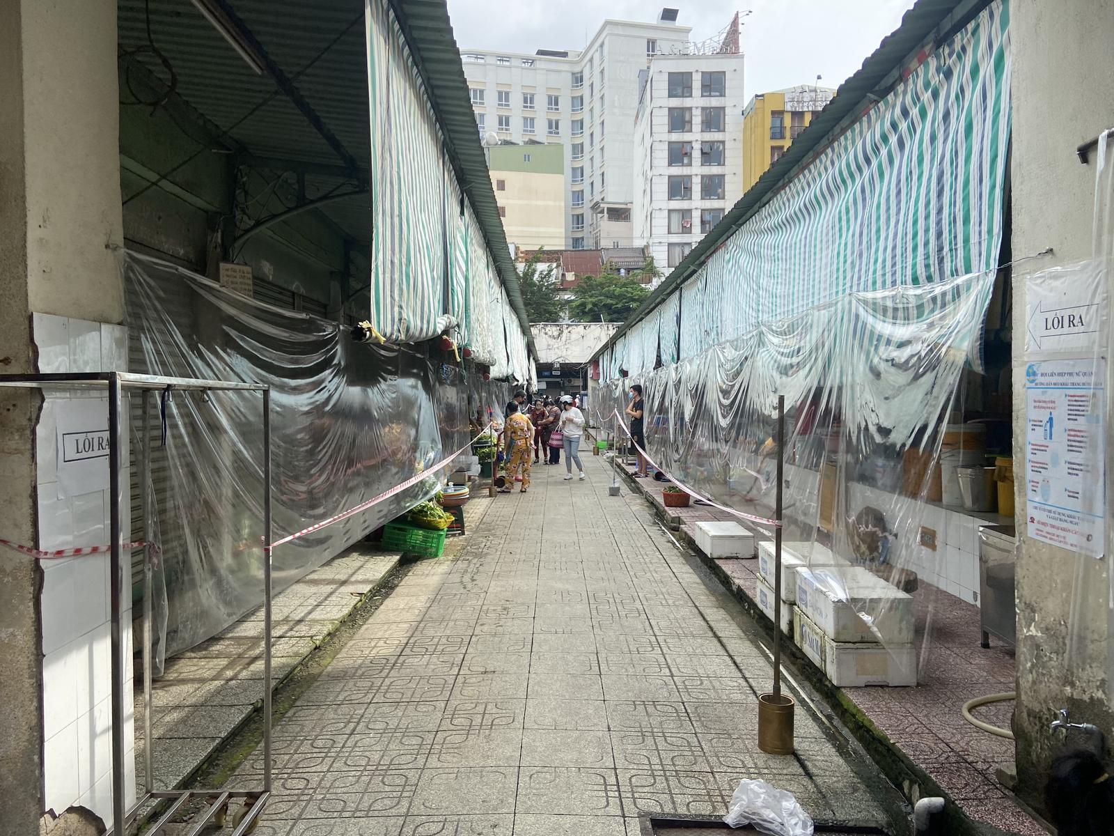 Chợ đang tiến hành phát gói hỗ trợ cho tiểu thương theo Nghị quyết 09 của TP HCM. Ảnh: Chu Tuấn