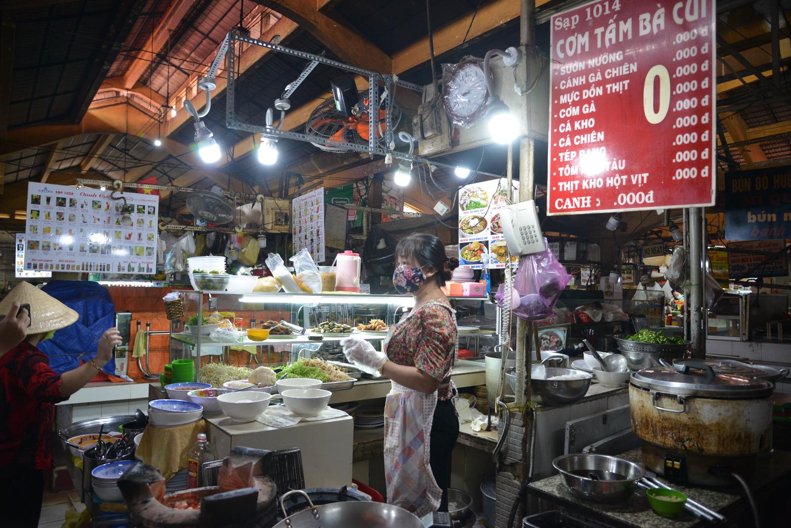 Chị Liên, tiểu thương bán đồ ăn tại chợ Bến Thành chia sẻ: “Tôi rất vui mừng được ra chợ để phục vụ bà con. Tôi cũng mong một ngày gần đây thành phố và các chợ được hoạt động trở lại như trước, bà con ủng hộ cho tiểu thương chợ Bến Thành. Mấy hôm nay mở bán lại, khách cũng chưa đông, chủ yếu là khách quen mua ủng hộ”.