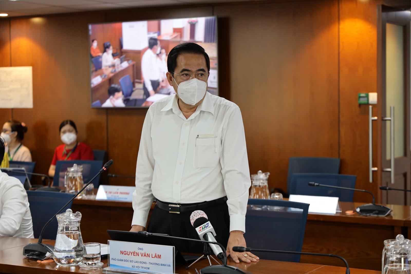 Phó Giám đốc Sở Lao động - Thương binh và Xã hội TP Nguyễn Văn Lâm thông tin tại họp báo. Ảnh: TTBC