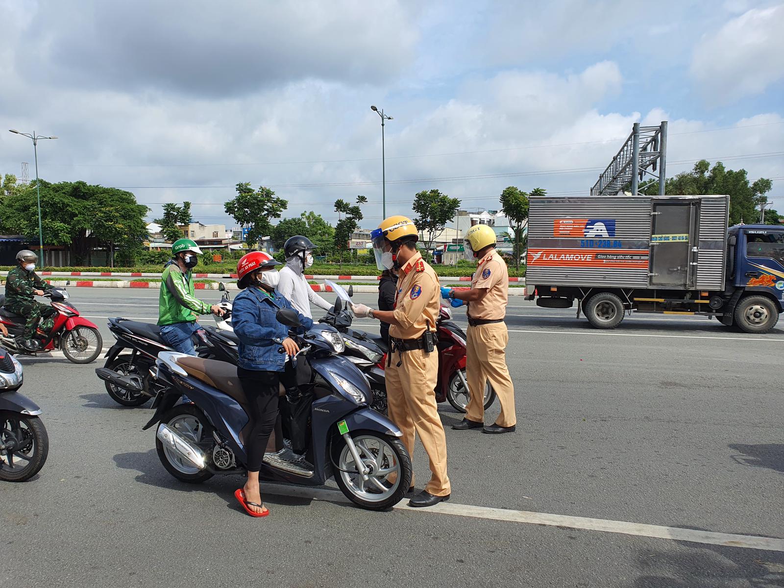 “Xe ôm công nghệ”, người dân và phương tiện vận tải lưu thông tuỳ thuộc vào từng cấp độ dịch. Ảnh: Đinh Mười