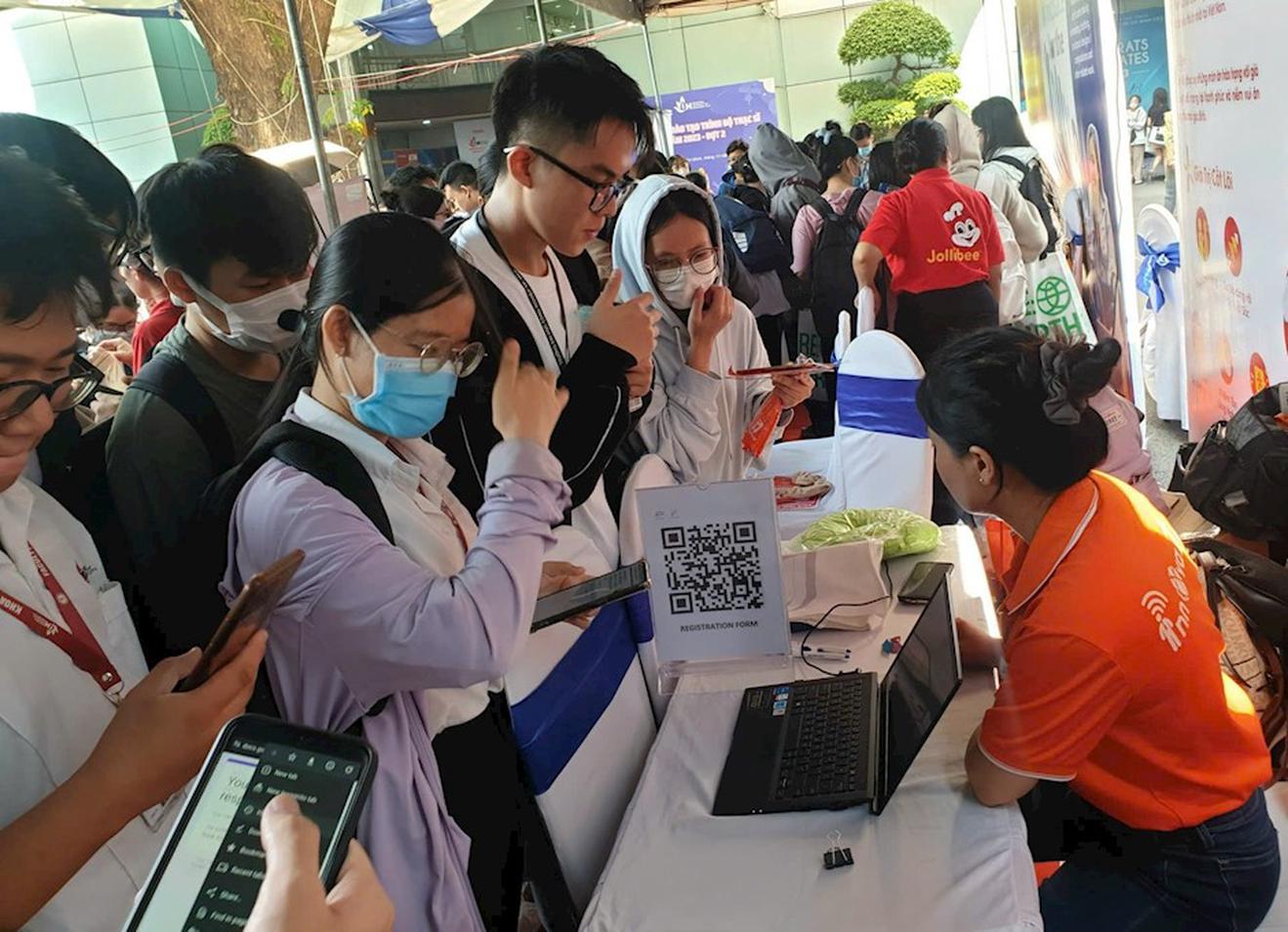 Các Nhà tuyển dụng đang hướng dẫn cho người lao động tại Ngày hội việc làm tại TP Hồ Chí Minh. Ảnh: TTDVVL