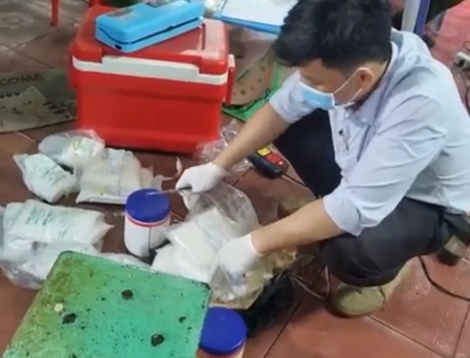 Thời gian hoạt động của cơ sở từ khoảng 19h hôm trước đến khoảng 3h sáng hôm sau. Chất bột màu trắng do ông L. mua ở Quận 5 (cũ) với số lượng 35kg vào ngày 18/5 và đã sử dụng hết 32kg.