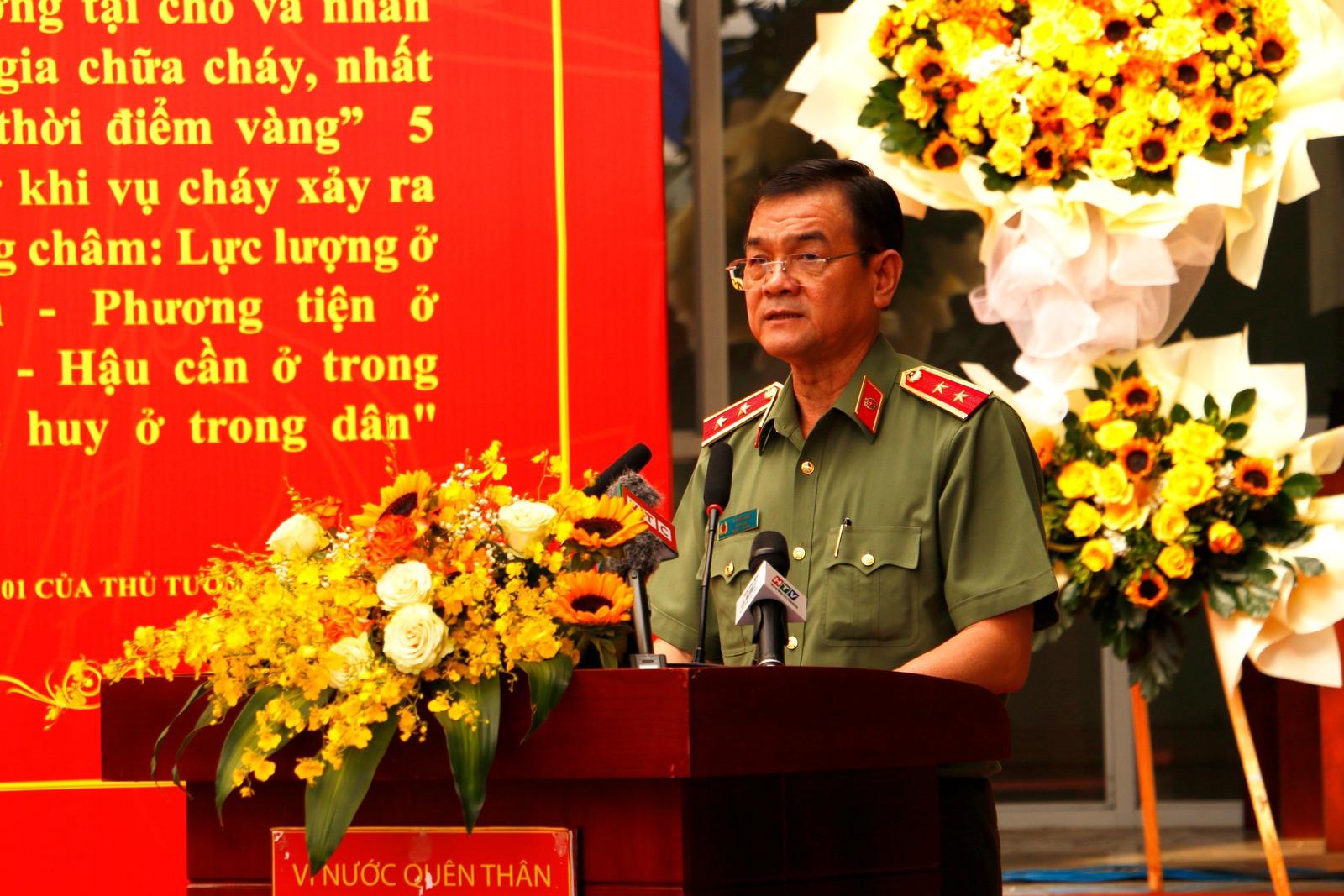 Phát biểu tại buổi lễ, Trung tướng Lê Hồng Nam, Giám đốc Công an TP Hồ Chí Minh cho biết, thời gian qua, tình hình cháy tại TP Hồ Chí Minh đang diễn biến theo chiều hướng phức tạp. Số vụ cháy lớn, cháy gây thiệt hại nghiêm trọng tăng so với cùng kỳ năm 2023.