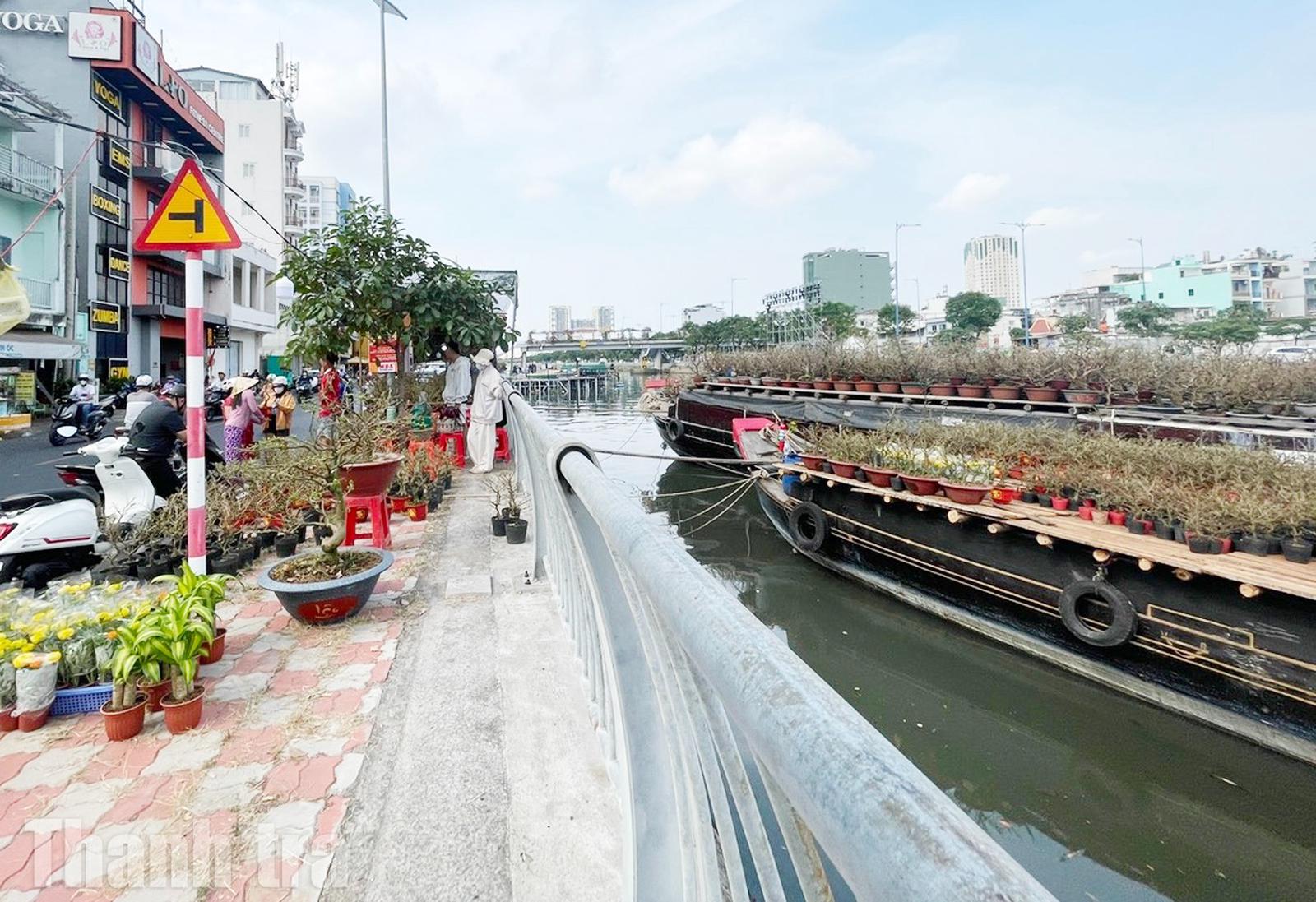 Dọc tuyến kênh Tàu Hủ - Bến Nghé, chợ hoa Xuân “Trên bến dưới thuyền” tái hiện rõ nét không gian chợ Tết đặc trưng của vùng sông nước Nam Bộ. Không gian chợ tái hiện hình ảnh quen thuộc của những ngày giáp Tết xưa, khi ghe thuyền chở đầy hoa kiểng, trái cây, nông sản tấp nập cập bến, tạo nên một dòng chảy giao thương rộn ràng và giàu bản sắc. Đứng trên bờ kênh nhìn xuống, từng chiếc ghe bầu đầy ắp mai vàng, cúc mâm xôi, vạn thọ, tắc kiểng… như mang theo hương Xuân từ khắp các vùng miền đổ về thành phố.